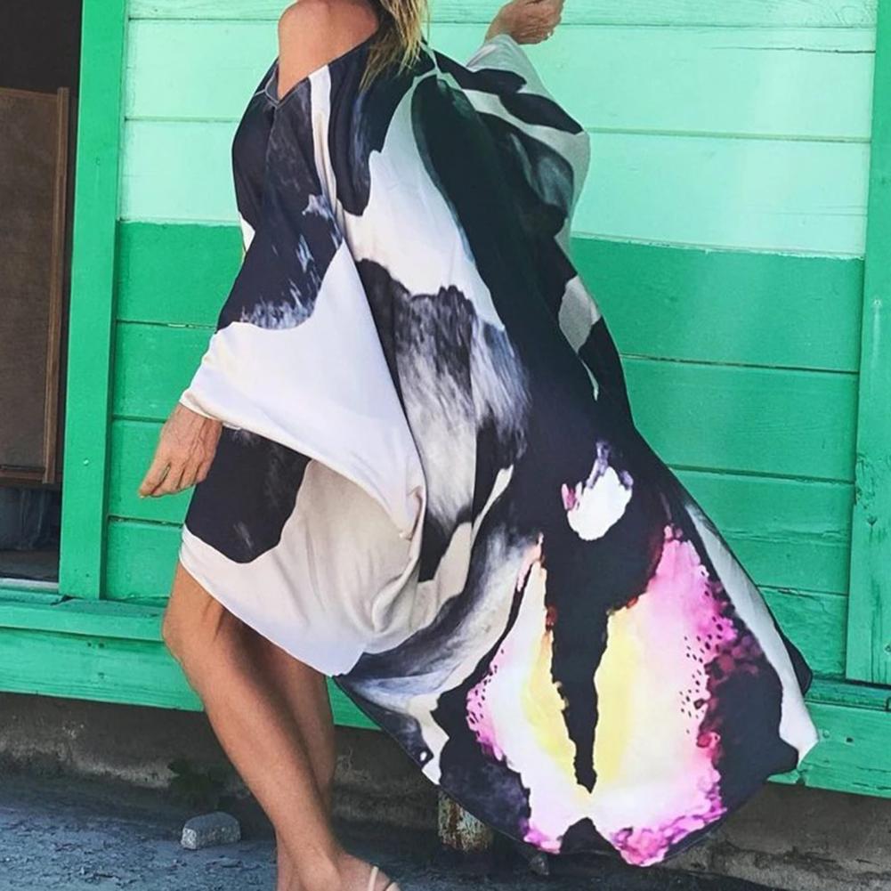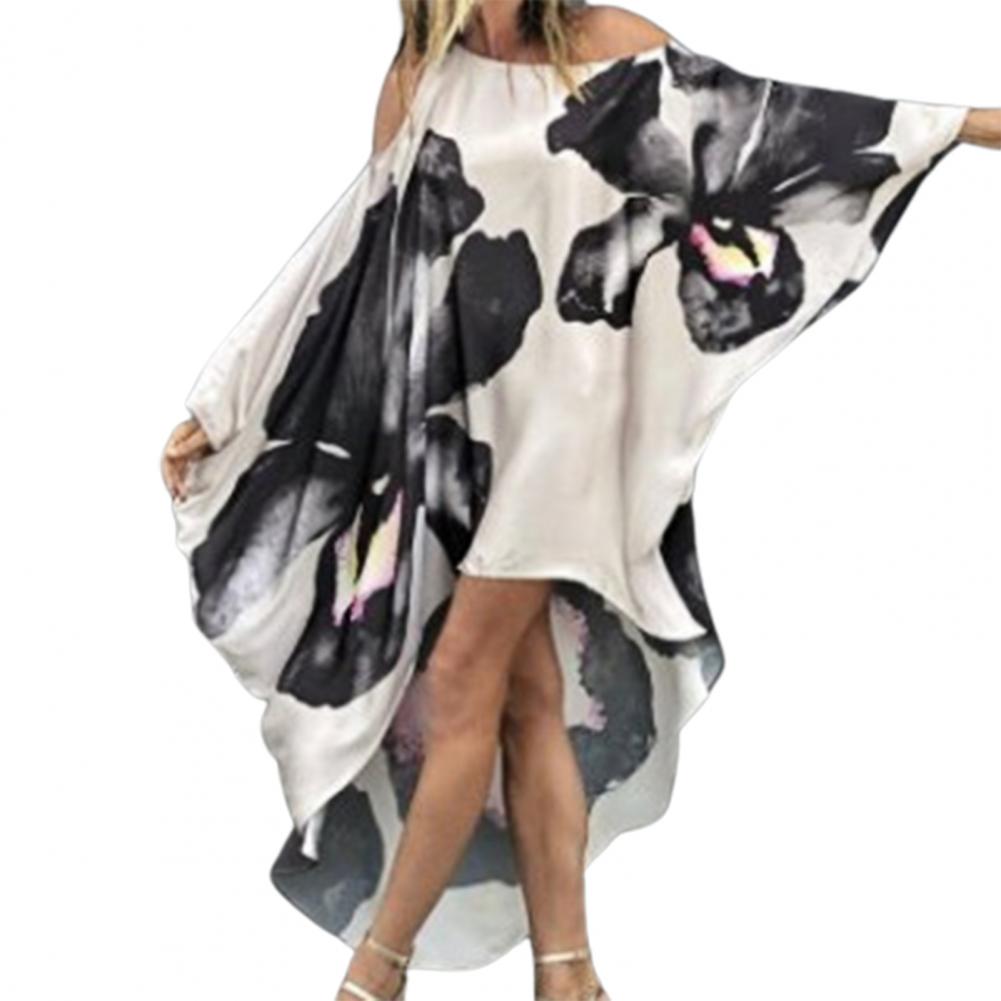Дизайнерское пляжное платье с рукавами «летучая мышь», асимметричным подолом и открытыми плечами, очень шикарное и модное.
