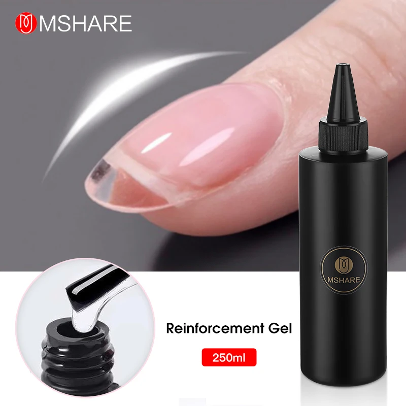 2. Нанесение армирующего геля, лечение с помощью сушилки для ногтей