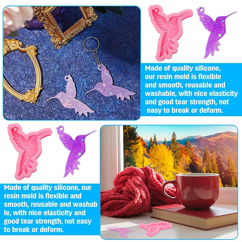 【Premium material】 брелок с изображением Колибри силиконовые формы из смолы изготовлены из высококачественного силикона, без BPA, гибкие, прочные и многоразовые. Совместимость с большинством материалов для рукоделия, таких как эпоксидная смола, УФ-смола, полимерная краска, порошок слюды, спиртовые чернила и т. д.