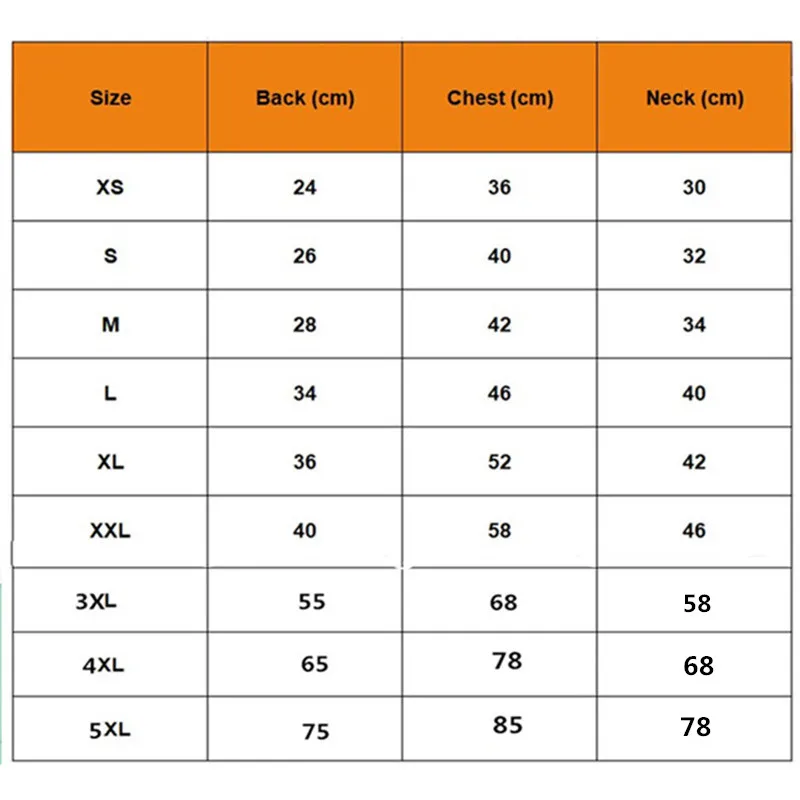 4. Для того, чтобы иметь более удобную одежду, пожалуйста, выберите больший размер вашего питомца, если у вас широкая одежда.