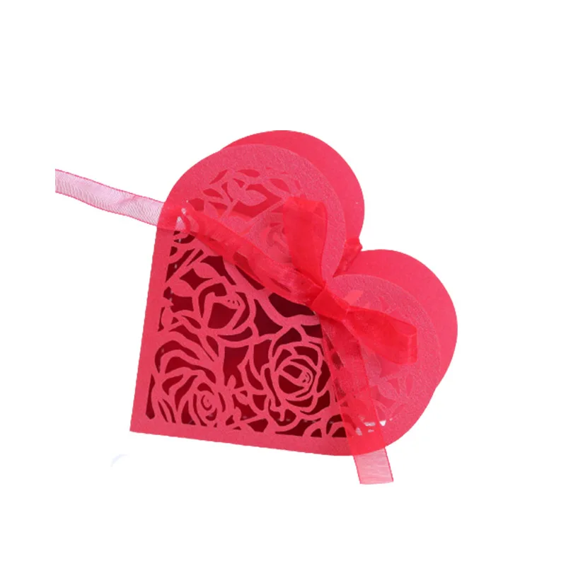 50 шт Розовое и цветок Лазерная резка свадебные подароки Сувениры Коробка DIY полый, для конфет коробки с бантом для вечеринки в Обручение Свадебная вечеринка Декор
