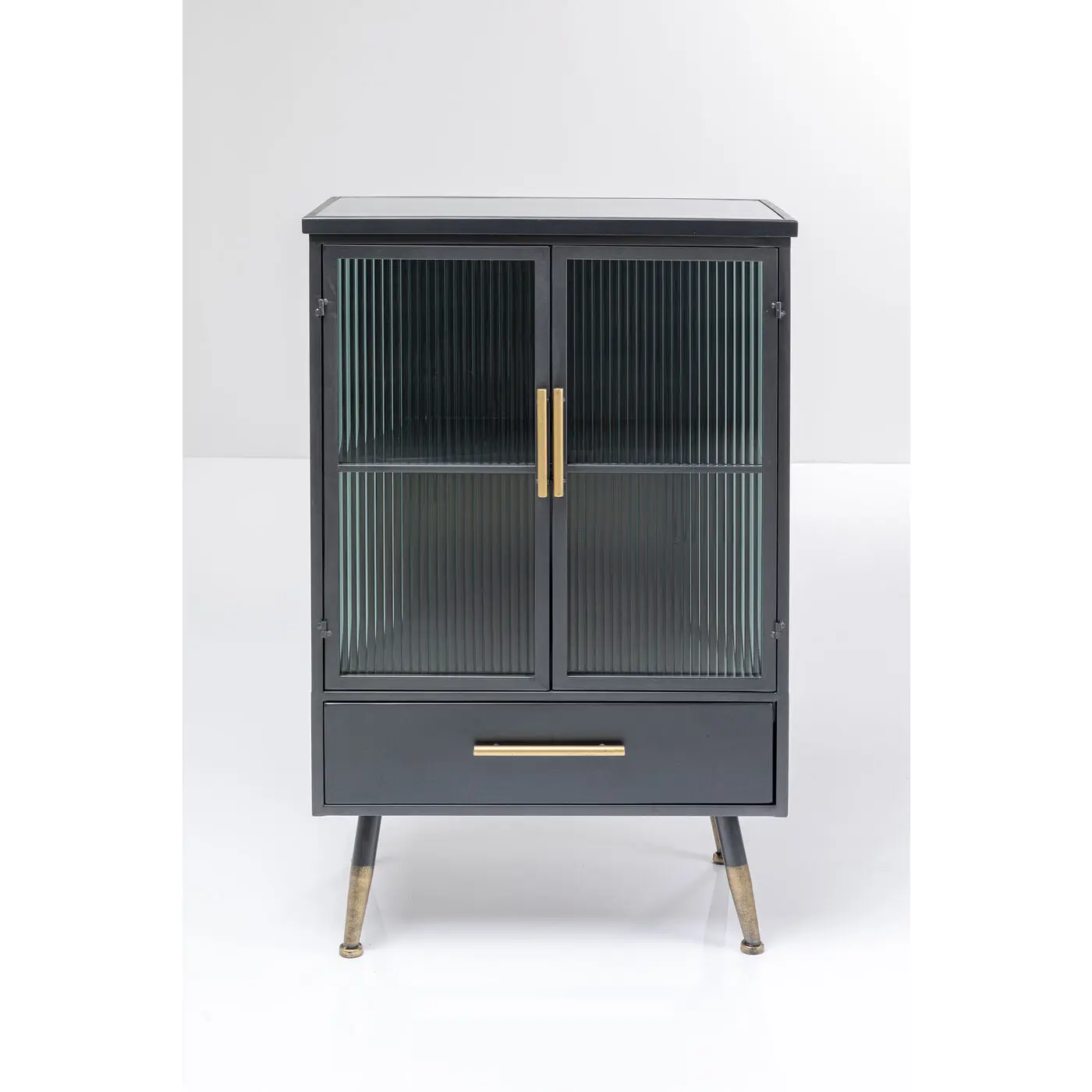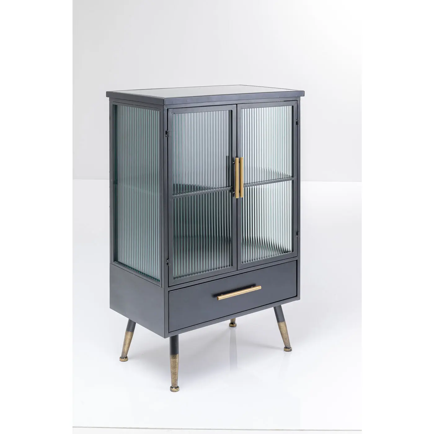 Конструкция изготовлена из стали, а фасады и бока изготовлены из рифленого стекла - это обеспечивает определенную легкость и элегантность. Типичными для серии La Gomera, которая включает в себя различные шкафы и комоды, являются сочетание материала сталь / стекло, четкие линии и слегка расклешенные ножки Корпус: МДФ лакированная, фасад: сталь с порошковым покрытием, стекло закаленное атласное, ножки: сталь с порошковым покрытием, ручки: сталь с порошковым покрытием