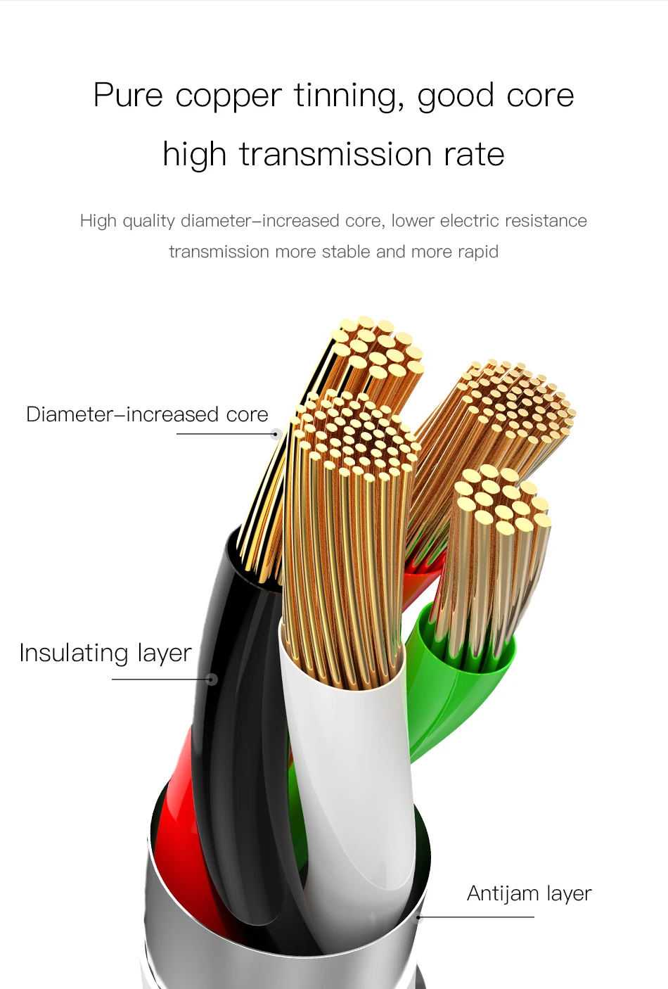 Кабель обладает повышенной прочностью и долговечностью благодаря нейлоновой оплетке, он устойчив к разрывам и выдерживает множество сгибаний без потери рабочих параметров.