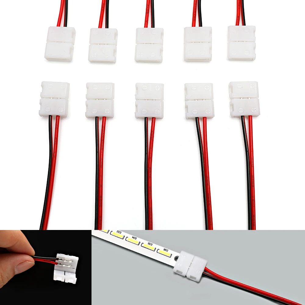 10 шт./партия без пайки 2-контактный светодиодный полоса соединителей 8 мм 10 мм разъем для шнура питания для 3528/5050 полосы PCB газа