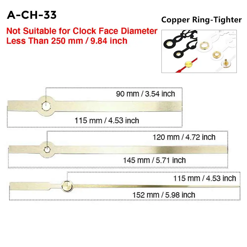 Стрелки часов различной длины подходят для циферблатов часов разных диаметров, пожалуйста, обратитесь к изображению ниже.