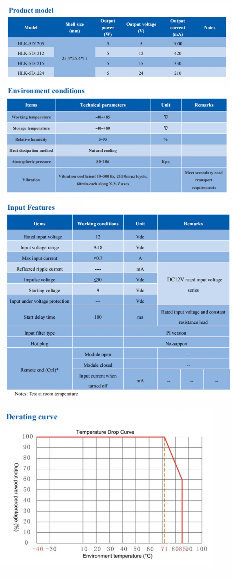 1500VDC стандартное изоляционное напряжение, допустимая рабочая температура-40 °C до + 85 °C, с выходным перенапряжением, сверхтоком, функциями защиты от короткого замыкания.