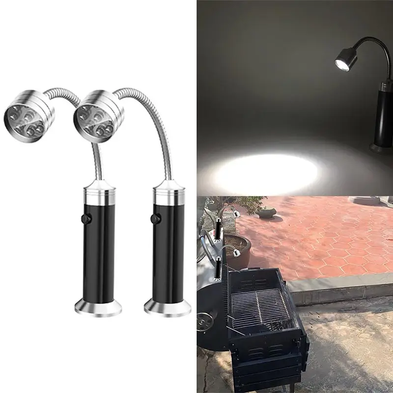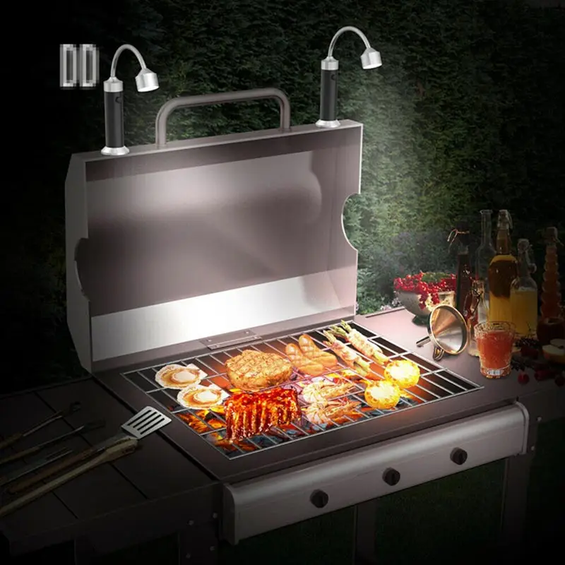 3). Светильник для барбекю имеет сильный магнитный фон, что делает светильник фиксированным на держателе для барбекю