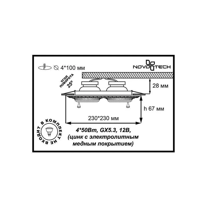 Гарантия 1 год Номер модели 370179 Название бренда Novotech Происхождение Китай Тип товара Потолочные светильники Входят ли лампочки в комплект Нет Источник света Галогенные лампочки Источник питания Переменный ток Напряжение 12 В Материал корпуса iron Стиль Современный Количество источников освещения 4 Цвет Белый Длина, мм 230 Ширина, мм 230 Степень пылевлагозащиты, IP IP20внешний вид товара