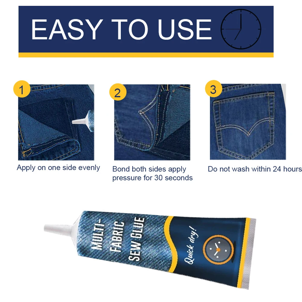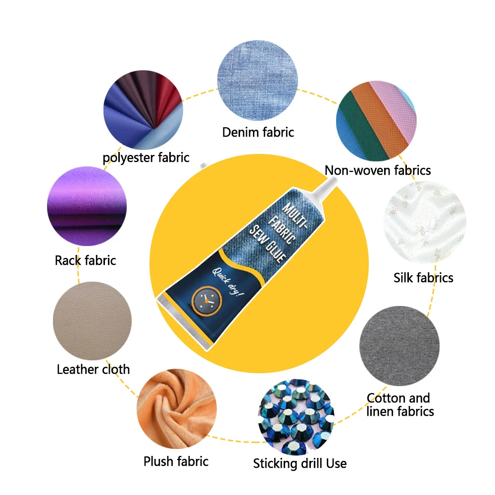 Этот быстросохнущий клей подходит для любого типа ткани, включая ткань, лен, деним, войлок, замшу, кожу, хлопок, полиэстер, фланель, шелк, синтетика и нейлон.