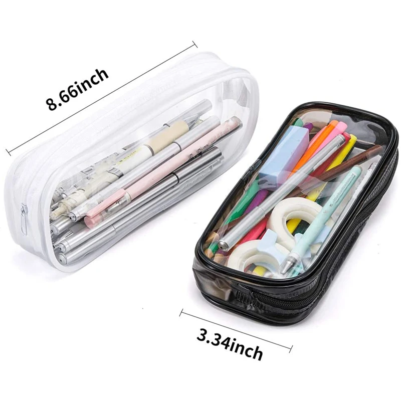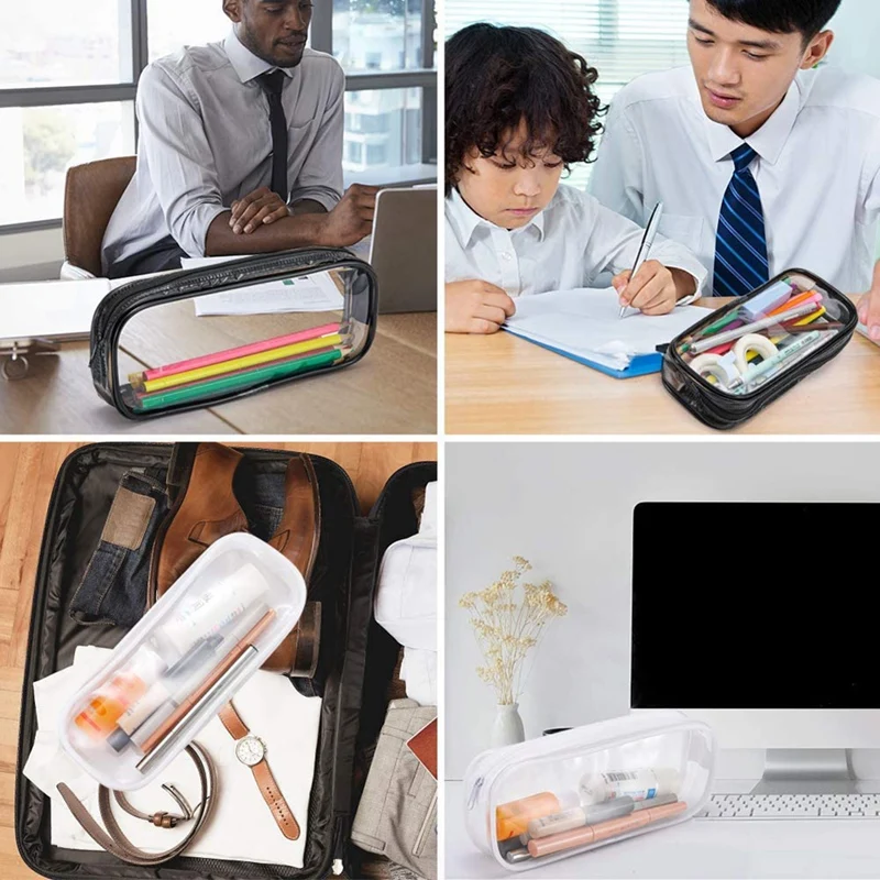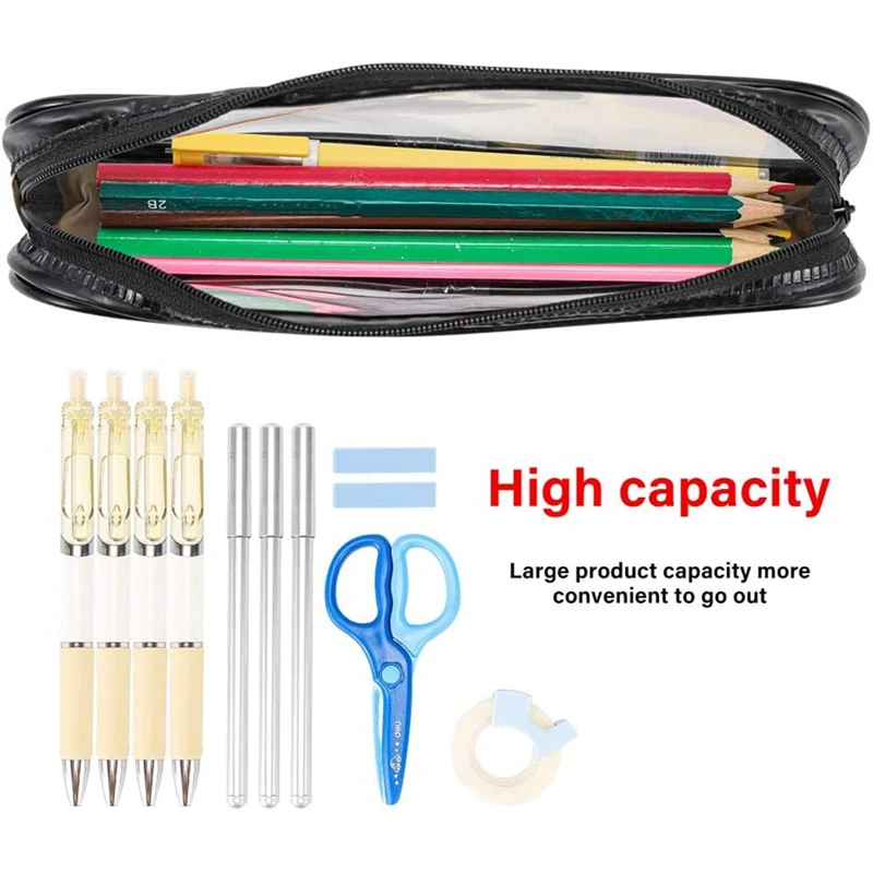 Wide range of USES: our transparent bag can be used as a pencil bag and cosmetic bag, as well as travel bag, and can also be used as a pencil box to store stationery, such as ruler, eraser, pen, pencil and other school supplies.Can also be used to carry your personal care items, such as stationery, toothbrush, toothpaste, shampoo, conditioner, soap, cosmetics, essential oil, etc.Meet your different needs.