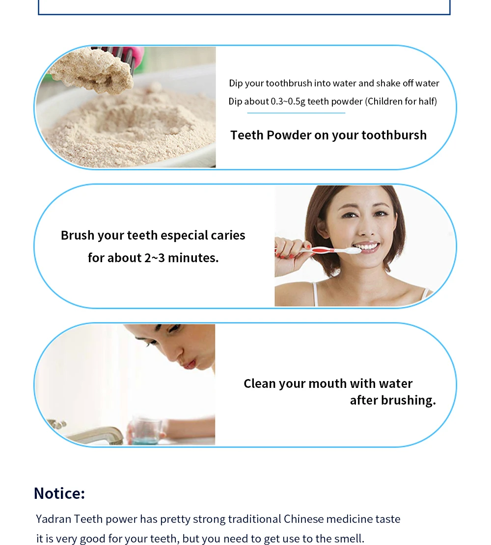 У зуба Yadran довольно сильный вкус традиционной китайской медицины, это очень хорошо для ваших зубов, но вам нужно использовать для запаха.
