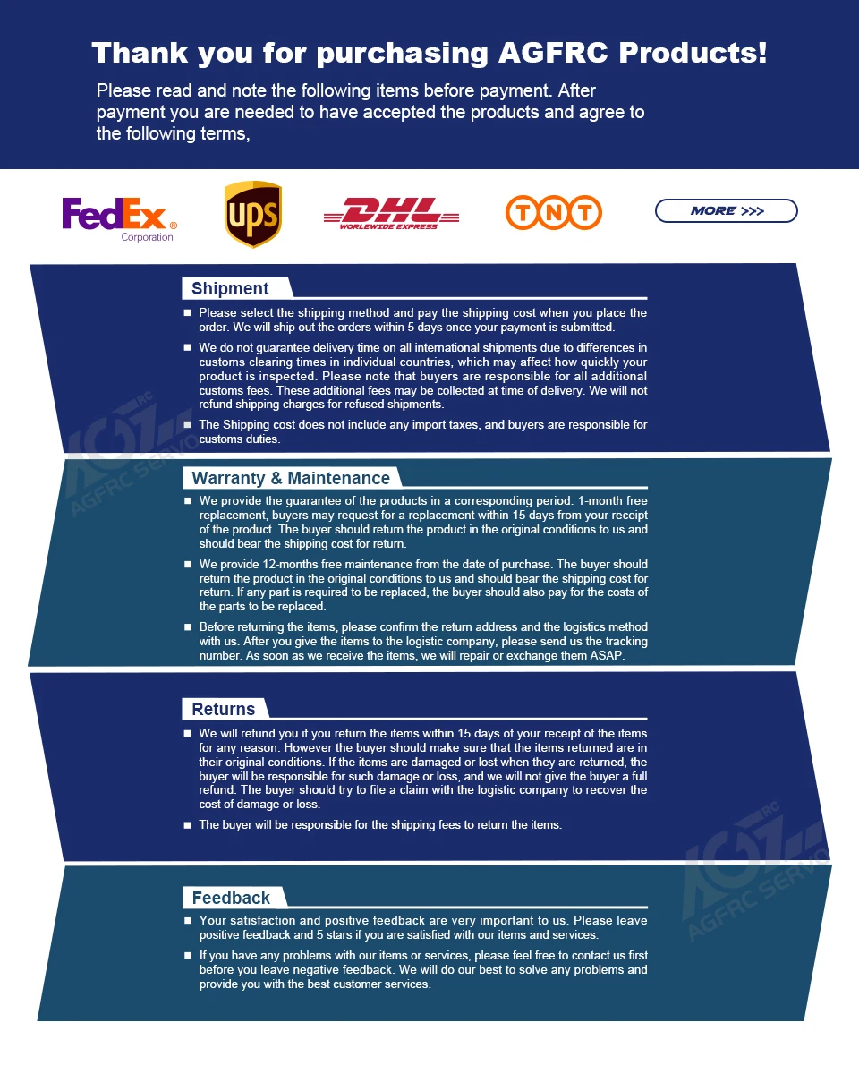 AGFRC-это наш новый бренд, и вся продукция сертифицирована CE, ROHS, FCC. Настоящим мы приветствуем отечественных и зарубежных дилеров и дистрибьюторов, чтобы быть нашим агентом, продвигать AGFRC по всему миру. AGFRC рассчитывает установить долгосрочное взаимовыгодное сотрудничество с вами! Мы обещаем, что AGFRC будет обслуживать всех клиентов с более высоким стандартом, лучшим качеством и превосходным обслуживанием.