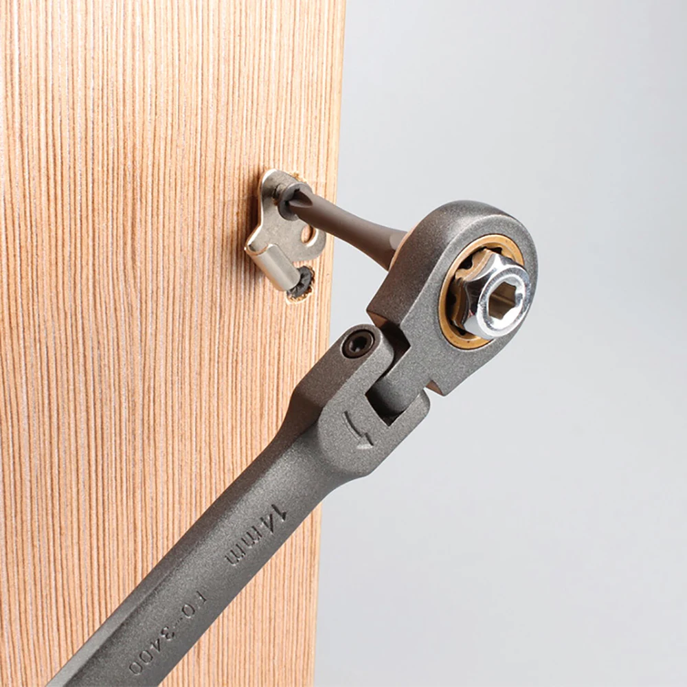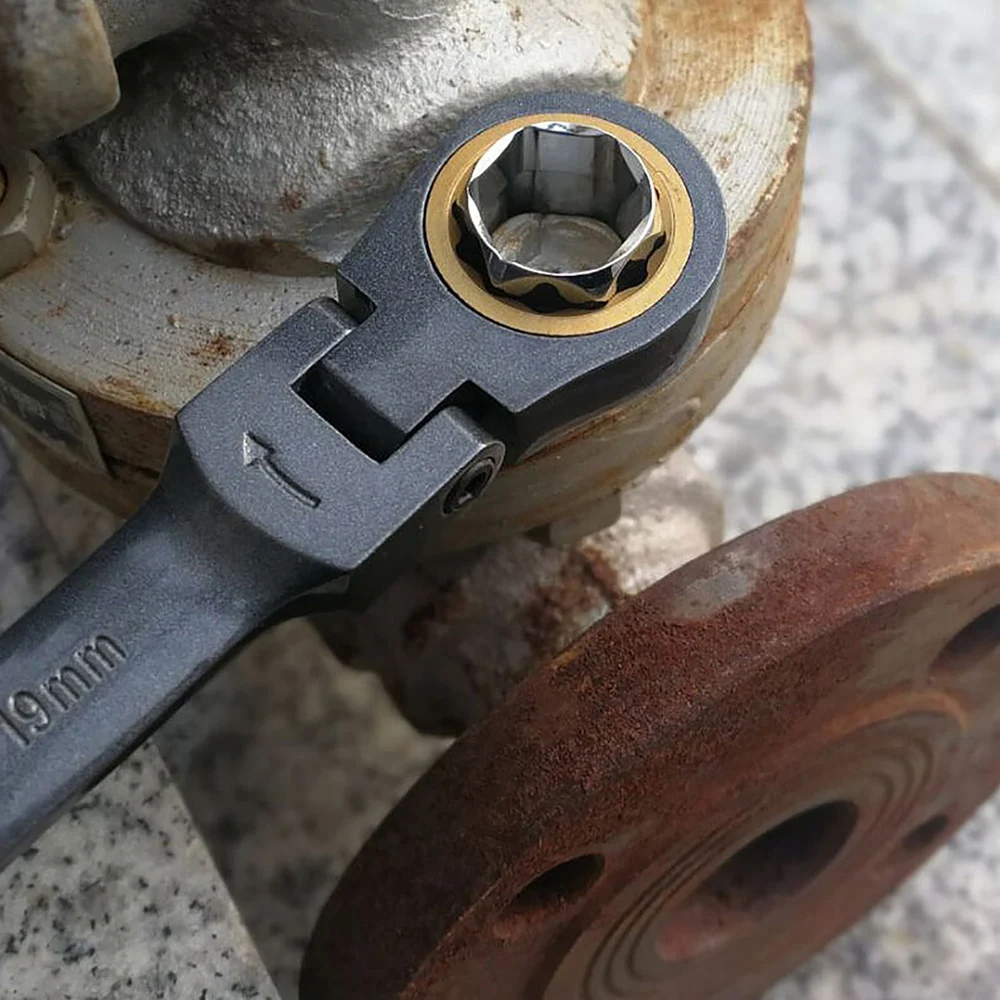-Гибкая головка 180 градусов поможет вам легко обойти препятствия и добраться до самых плотных мест, где большинство трещоточных ключей не достигнет.