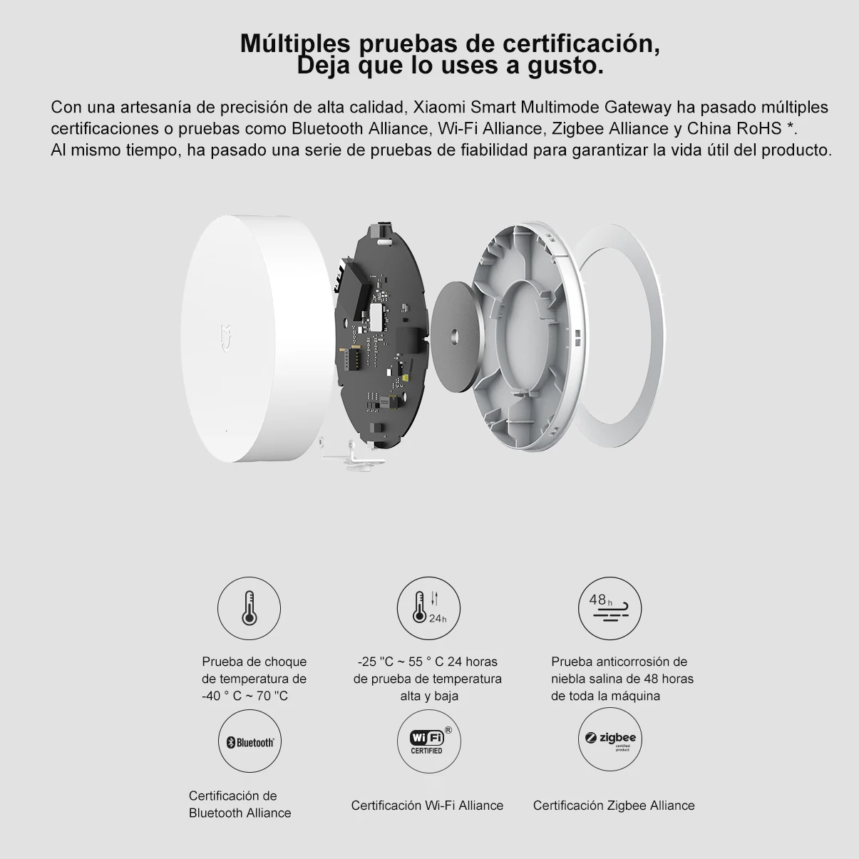 Благодаря высокой точности работы, Xiaomi Smart Multimode Gateway прошла несколько сертификатов или тестов, таких как Bluetooth Alliance, Wi-Fi Alliance, Zigbee Alliance и China RoHS *. В то же время он прошел ряд испытаний на надежность, чтобы обеспечить срок службы продукта.