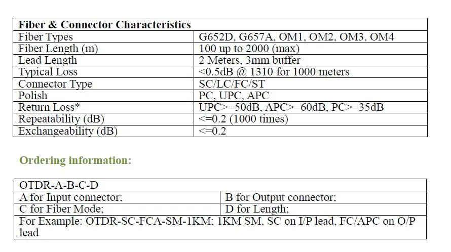 Domain Reflectometers (OTDRs) помогает минимизировать воздействие импульса запуска OTDRs на погрешность измерений. Доступно во многих различных конфигурациях и длинах волокна.