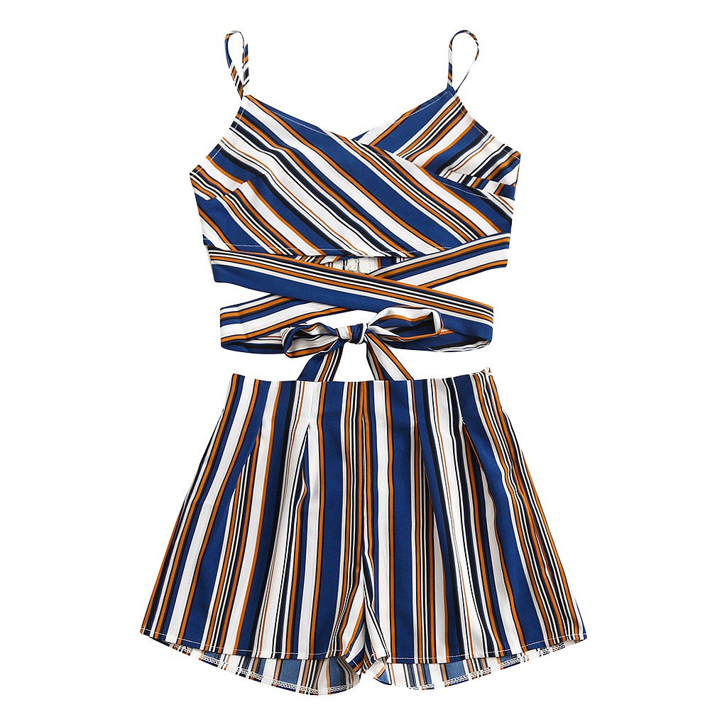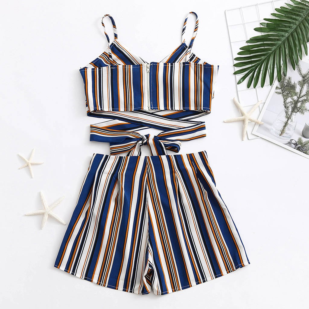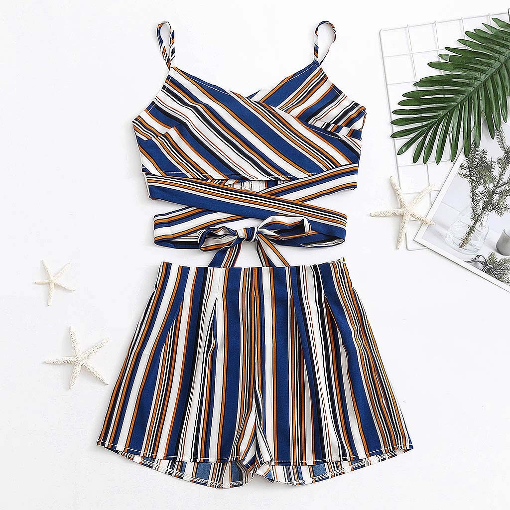 Женский сексуальный женский полосатый жилет, бандажные шорты, комплект из двух предметов