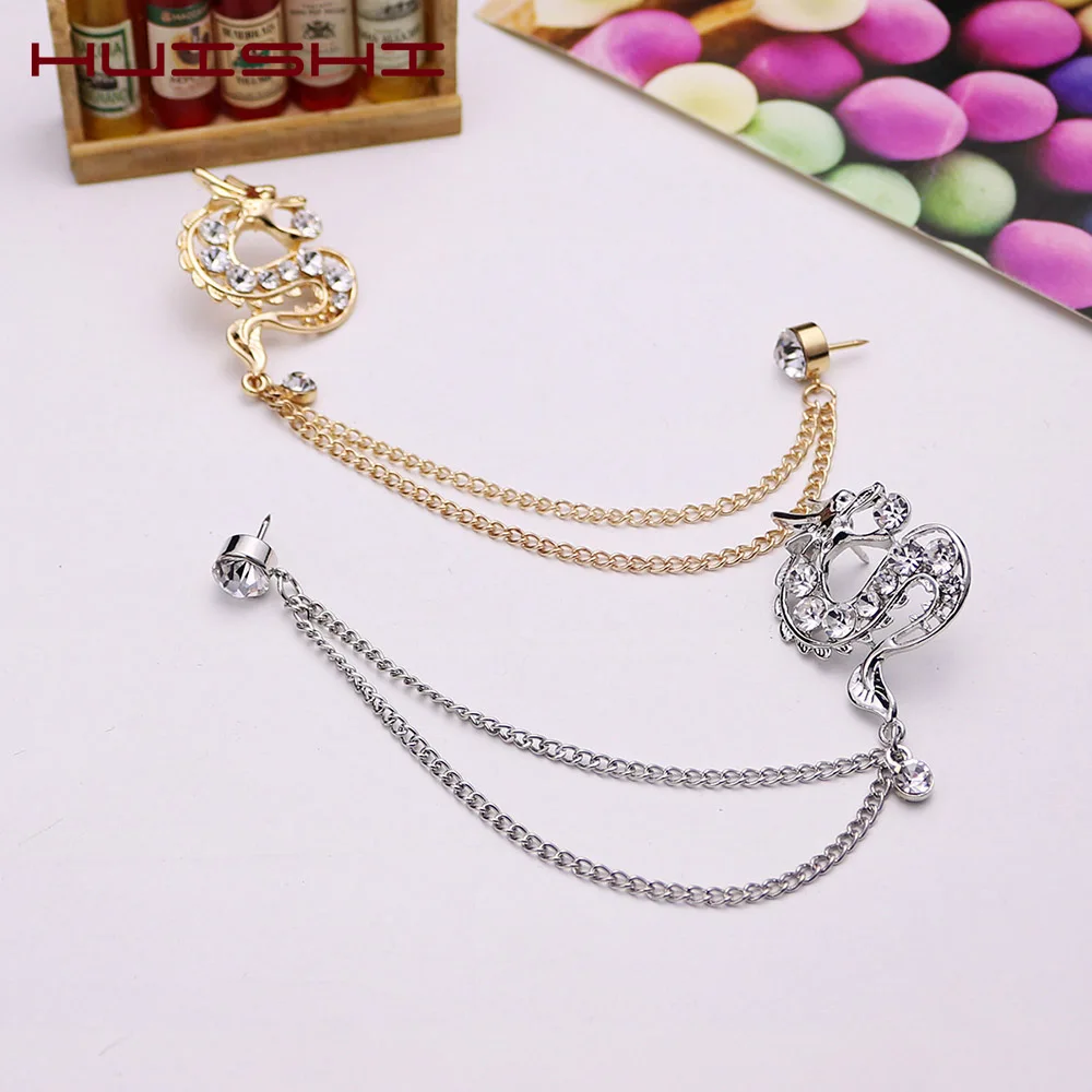 Мужская брошь в форме дракона, Золотая, серебряная, с кисточками, с цепочкой, с лацканами, Классическая булавка, смокинг, для банкета, корсаж, платье, рубашка, брошь, аксессуары