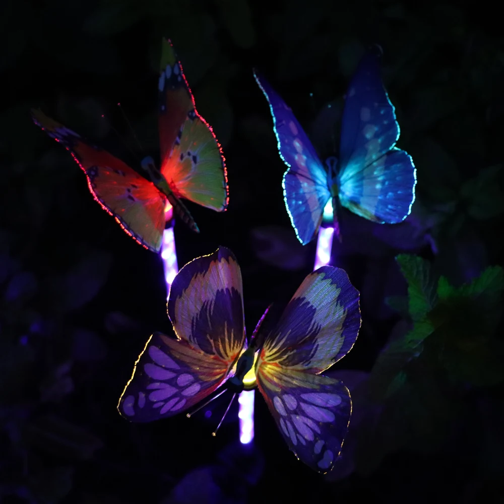 3 шт. в упаковке, светодиодные лампы с бабочками на солнечных батареях, водонепроницаемые волоконно-оптические многоцветные светодиодные лампы для садового декора