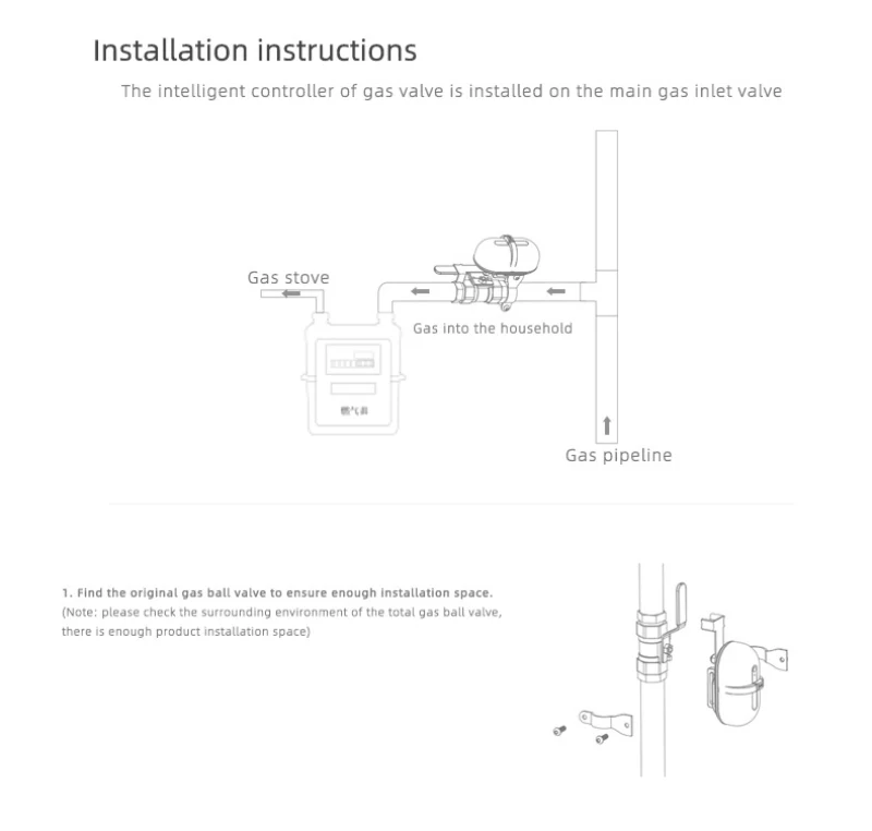 【Valve】 подходит для бытовых газопроводов, а также для других газовых или жидких клапанов с автоматическим управлением, для удовлетворения интеллектуального/ручного управления клапанов. (Применимо к ручному клапану типа «» и дроссельному клапану)