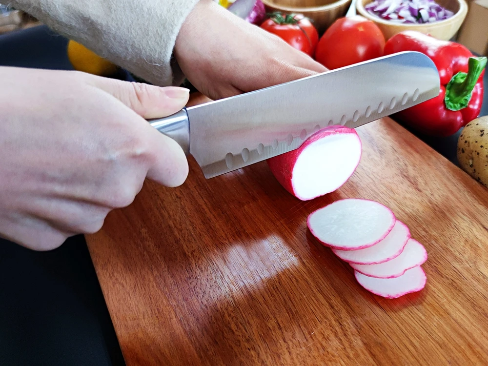 [Жесткий и острый нож]: Лезвие изготовлено из высококачественной нержавеющей стали (Hrc56 ± 2) и было термообработано, чтобы сделать его чрезвычайно твердым, устойчивым к пятнам и коррозии и очень острым. Эти прочные, практичные и долговечные ножи облегчают приготовление пищи и еду. Получите удовольствие от резки на кухне.