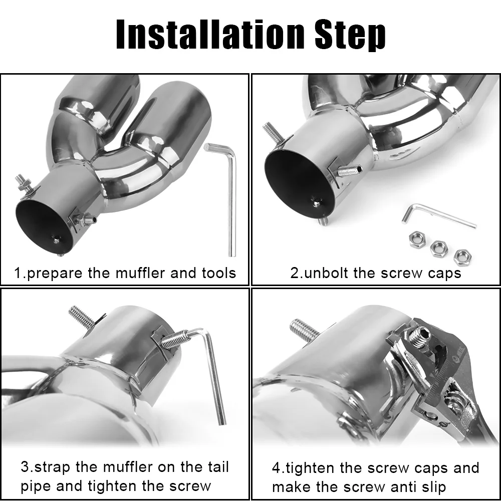 Цвет: серебристыйРазмер: как на фотографииОсобенности:100% Новинка и высокое качество.Материал из высококачественной нержавеющей стали.Без ржавчины, нержавеющая сталь в рулоне, Круглый Наклонный наконечник.Модный дизайн, отличный аксессуар, чтобы нарядить ваши аттракционы.Координатные порты выхлопа для более удобного выхлопа.Прочный, прочный и стабильный