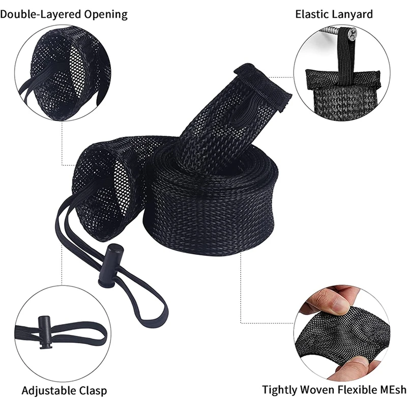 [Регулируемый запирающий шнур] каждый рукав также поставляется с эластичной лентой для закрепления рукава на ручке катушки и эластичной петлей сверху, сделать его намного проще, чтобы повесить рукава стержня на любой крючок на стене, занимают мало места, чтобы сэкономить гораздо больше места.