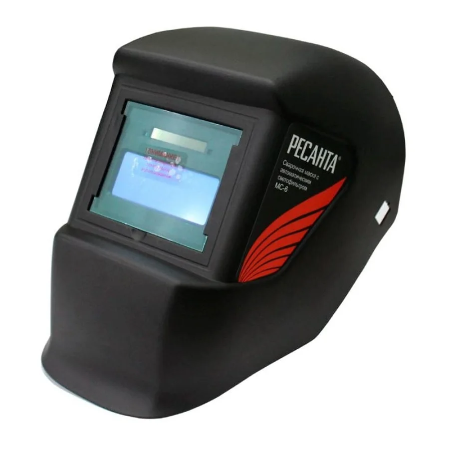 Welding mask resanta MS-6 is designed to protect the eyes from visible, ultraviolet and infrared radiation, as well as to protect the head and neck from getting Sparks during welding. The mask of this type is convenient, because the filter is automatically darkened when the arc is lit. Such a filter was called "chameleon" due to the ability to automatically darken. The degree of dimming can be adjusted using the built-in regulator depending on the model of the mask.