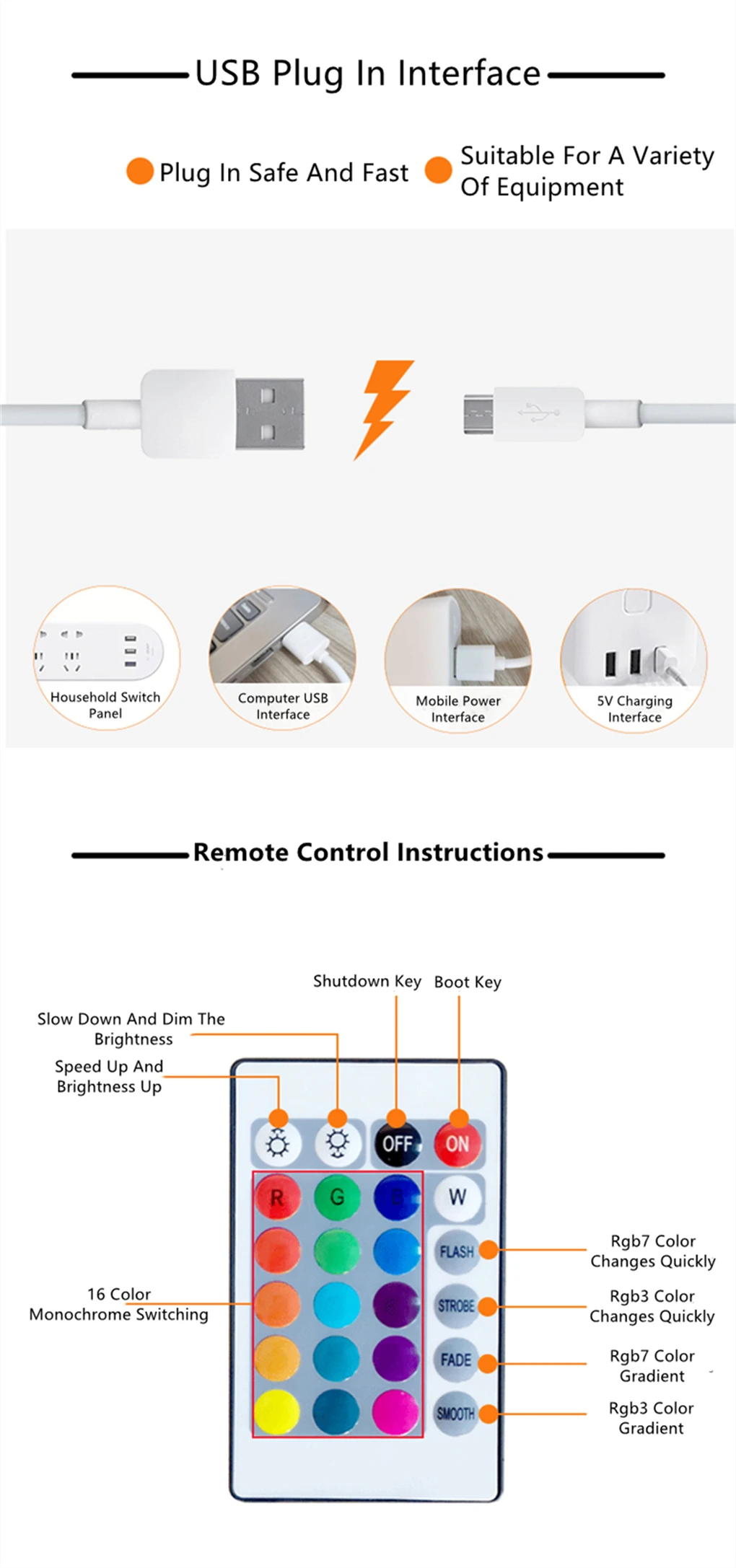 В дополнение ко всем функциям семи цветов сенсорный пульт дистанционного управления также может использоваться для дистанционного управления, планирования и 16 цветов светильник, в то время как семь цветов не имеют связанных функций.