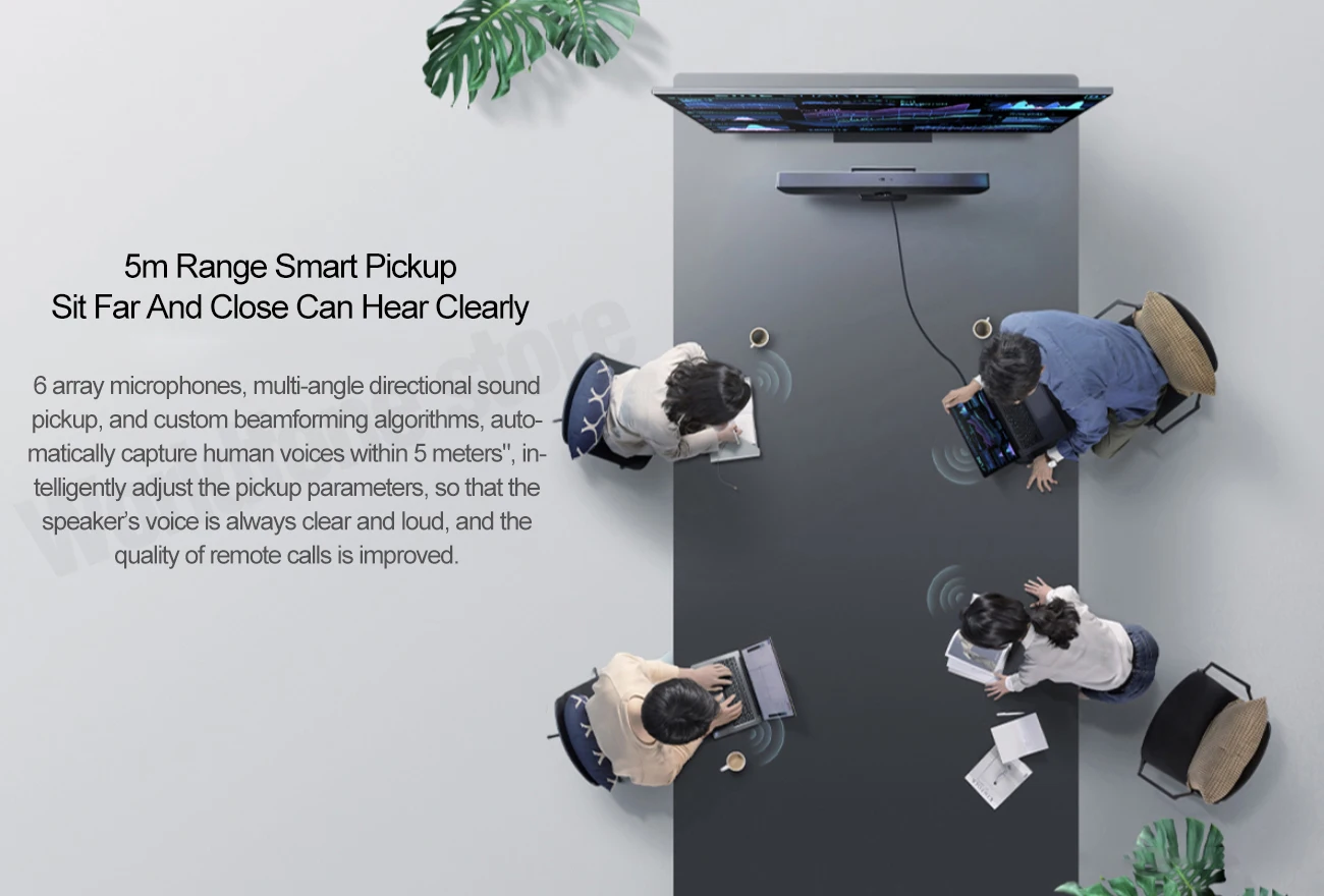 6 микрофонов, мульти-угол направленного звукоснимателя, и пользовательские алгоритмы формирования, авто-статически захватывает человеческие голоса в пределах 5 метров ", in-elligenty Отрегулируйте параметры пикапа, таким образом, голос динамика всегда четкий и громкий, а качество удаленных вызовов улучшено.