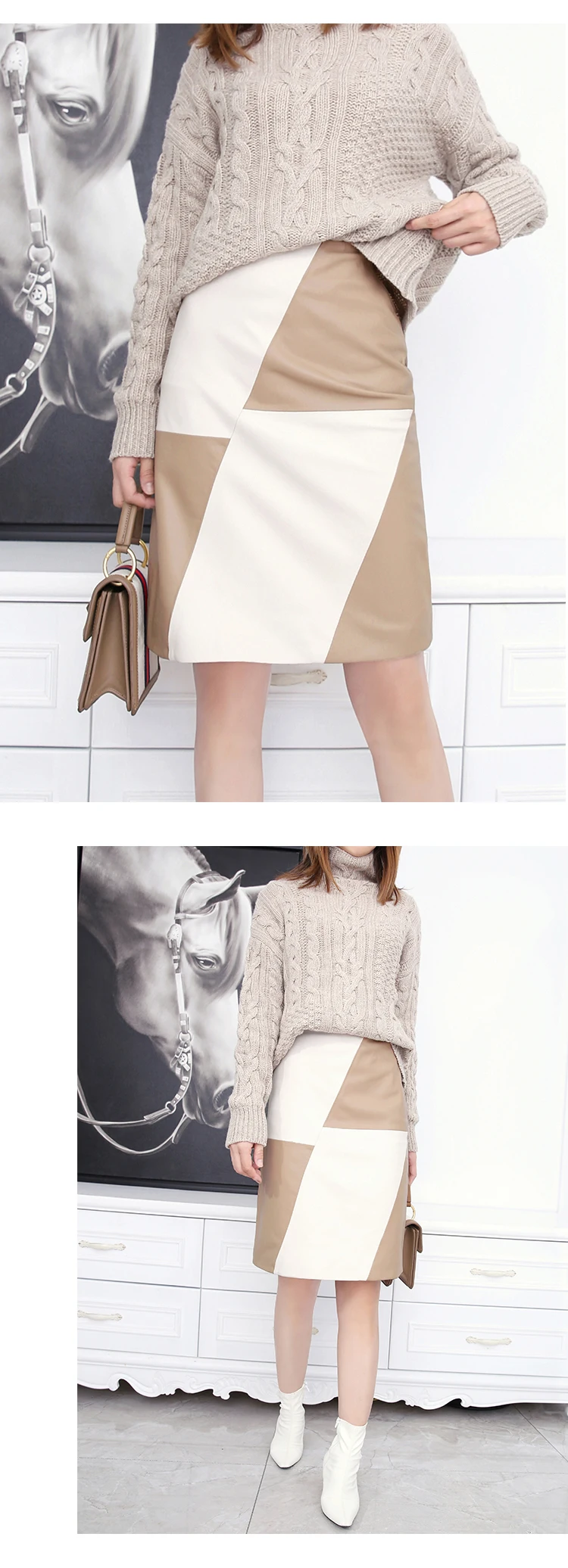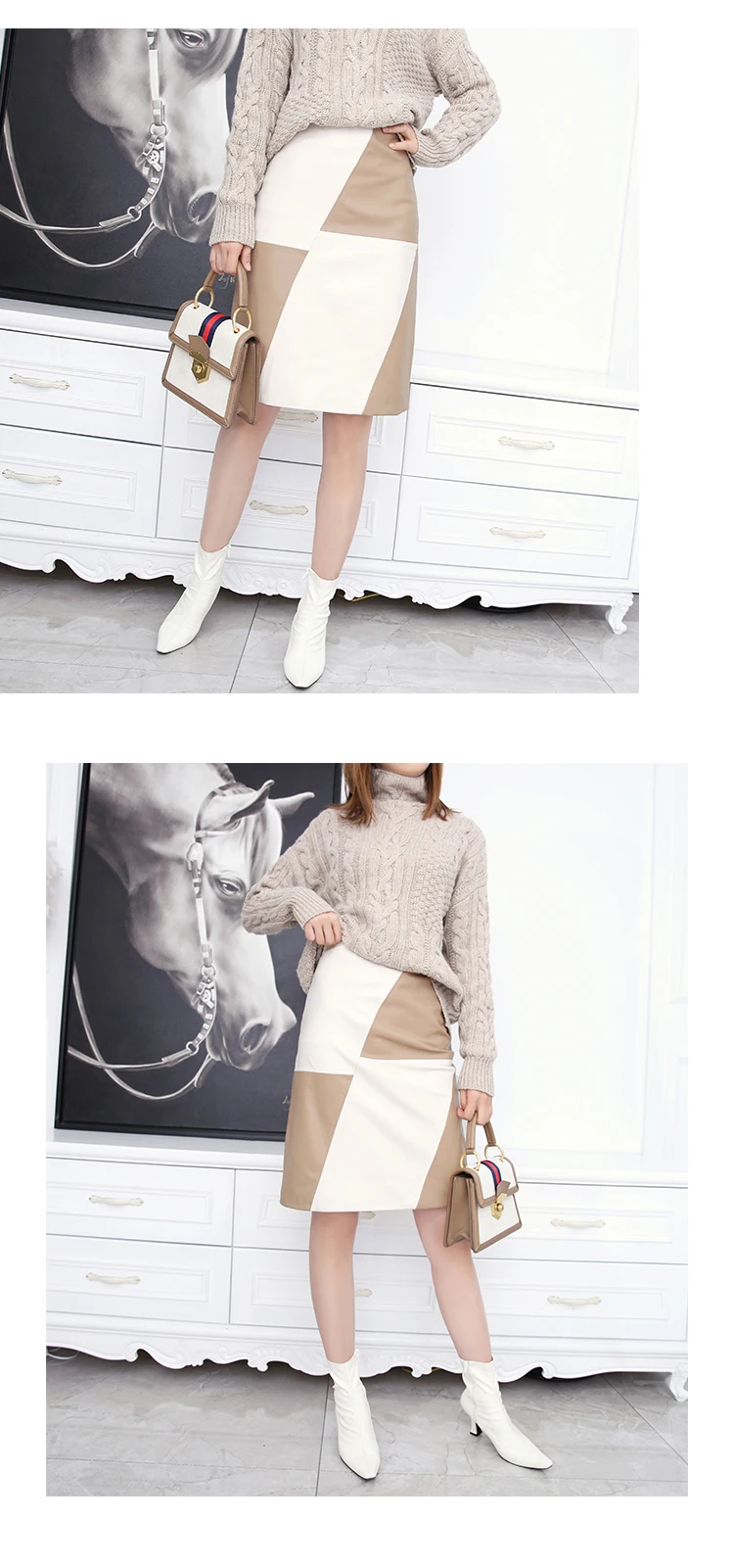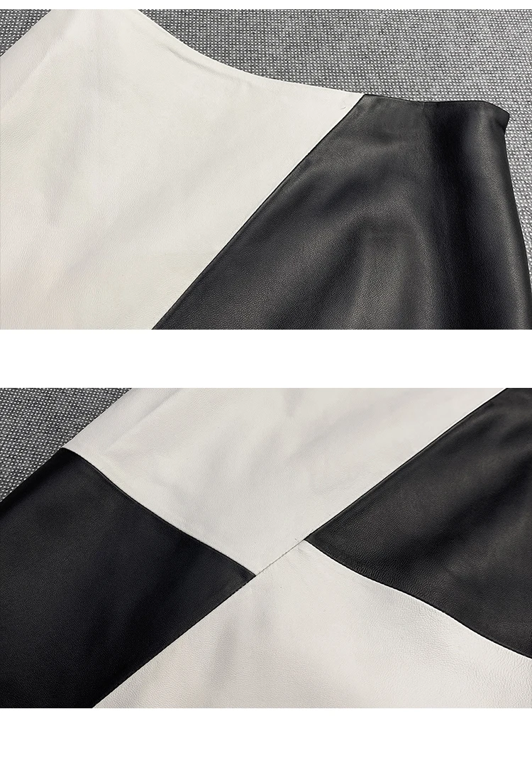 2021 Весенняя женская юбка из натуральной кожи, Минималистичная контрастная юбка