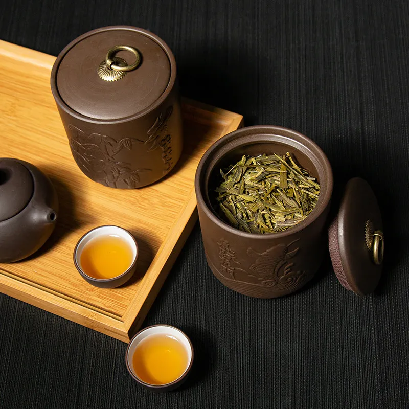 * 1. Чайная канистра из фиолетовой глины с крышкой.