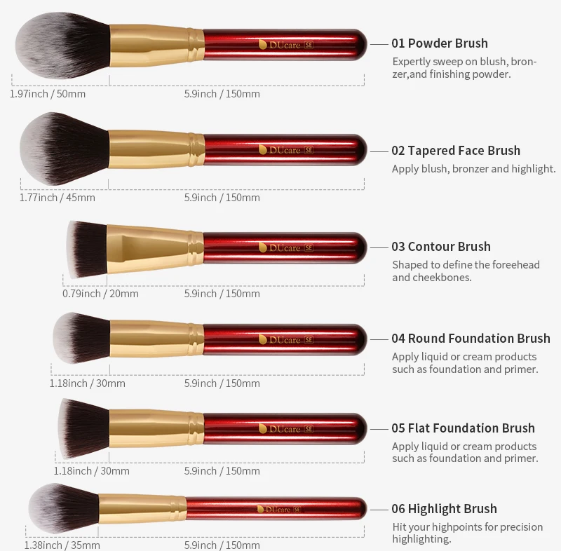 Набор кистей для макияжа DUcare Red 27 шт., натуральные синтетические волосы, растушевка, основа пудра Контур, тени для век, набор кистей для макияжа
