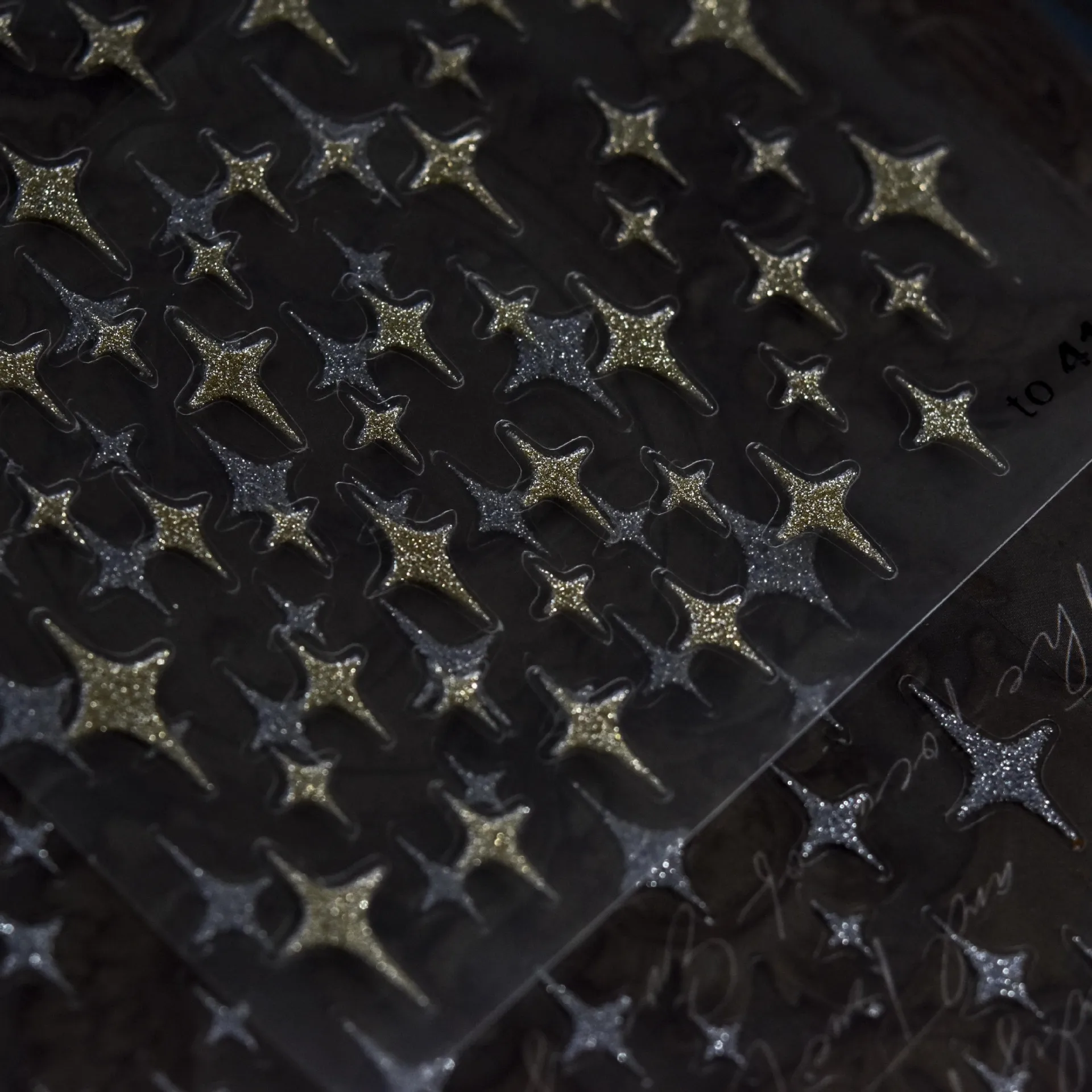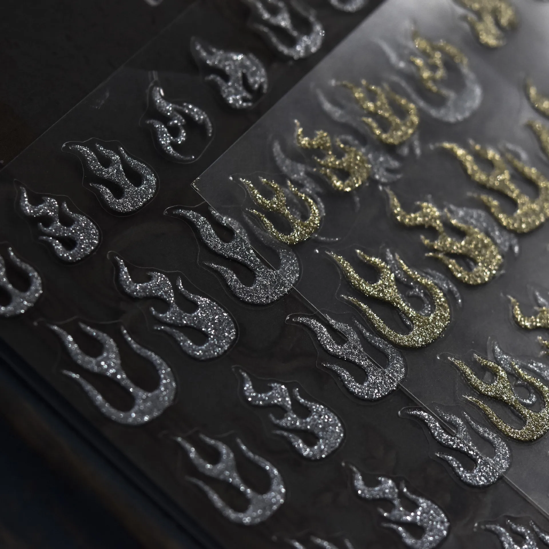 5D позолоченные наклейки для дизайна ногтей, наклейки для маникюра, золотые, серебристые, огненные, Звездные, Stellate, алмазные, порошковые украшения