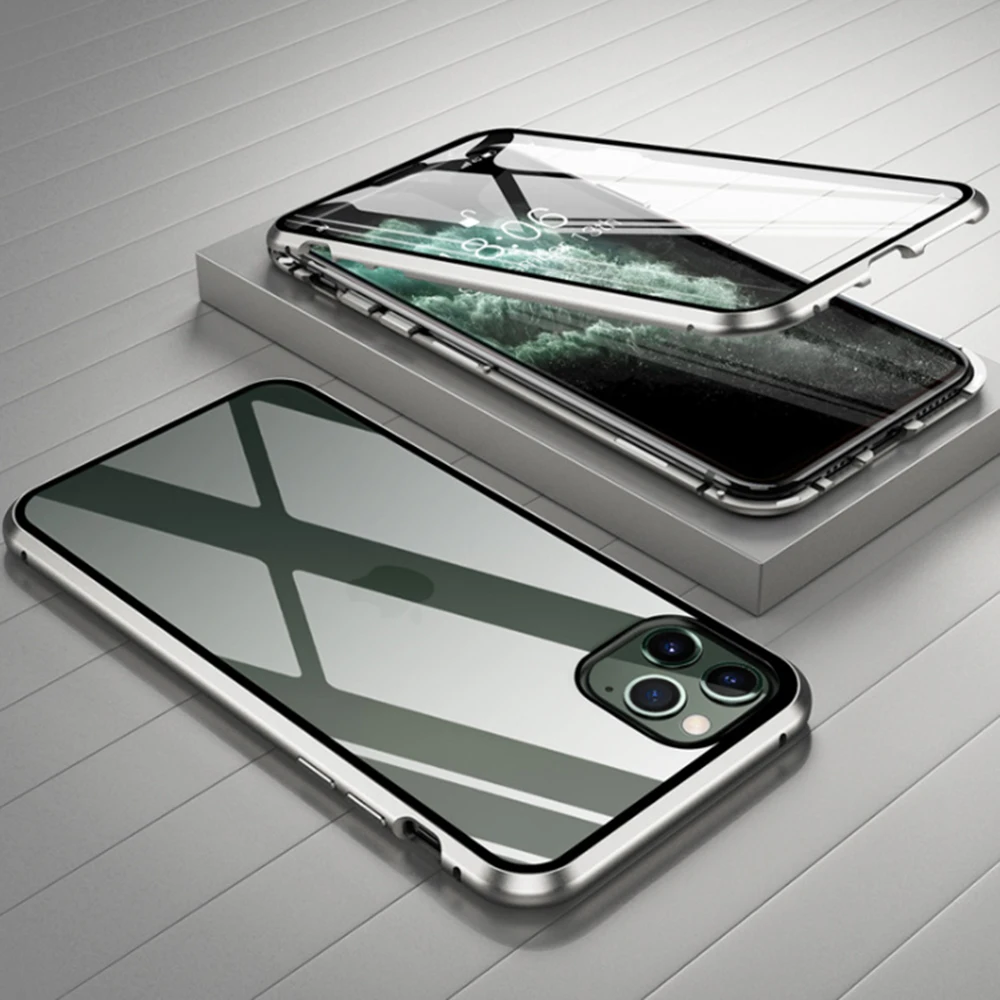 Закаленное стекло Прозрачный Магнитный адсорбционный металлический флип мобильный телефон чехол для iPhone 11 Pro XS Max 6 7 8 Plus X XR для iPhone