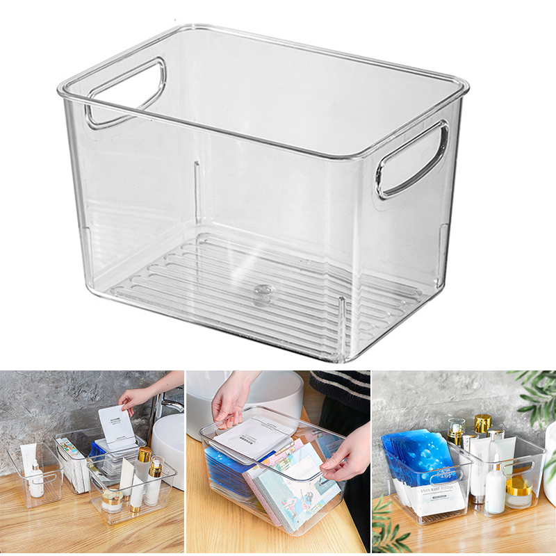 3. С удобными встроенными ручками легко переносить товары от стола до шкафа для хранения документов до книжной полки. Коробка прозрачная, и предметы для хранения ясны с первого взгляда.