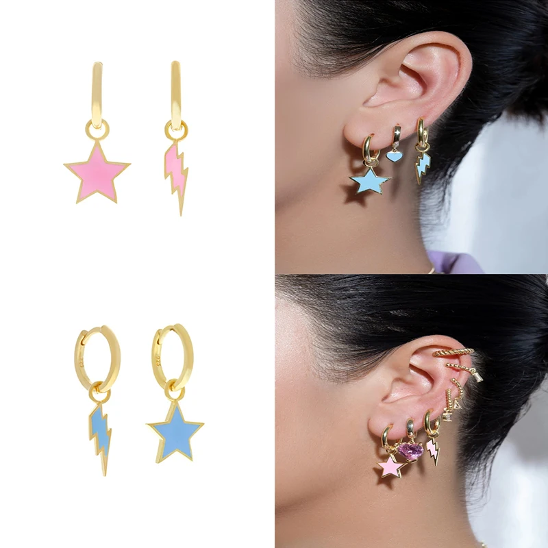 [Тип изделия]: эмаль с неправильной звездой и молниейСерьги