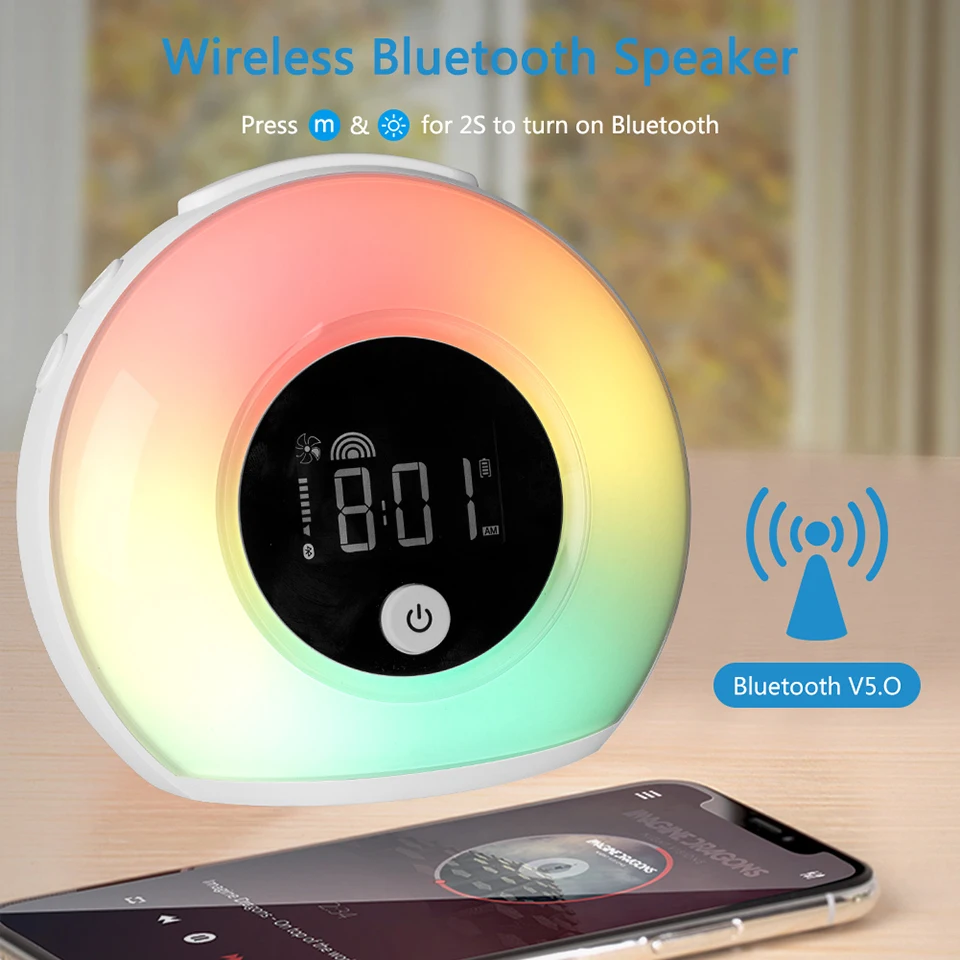 Будильник для спальни, музыкальный светильник пробуждения, с Bluetooth динамиками, затемняемый, меняющий цвет, ночной Светильник для тяжелых шпалов