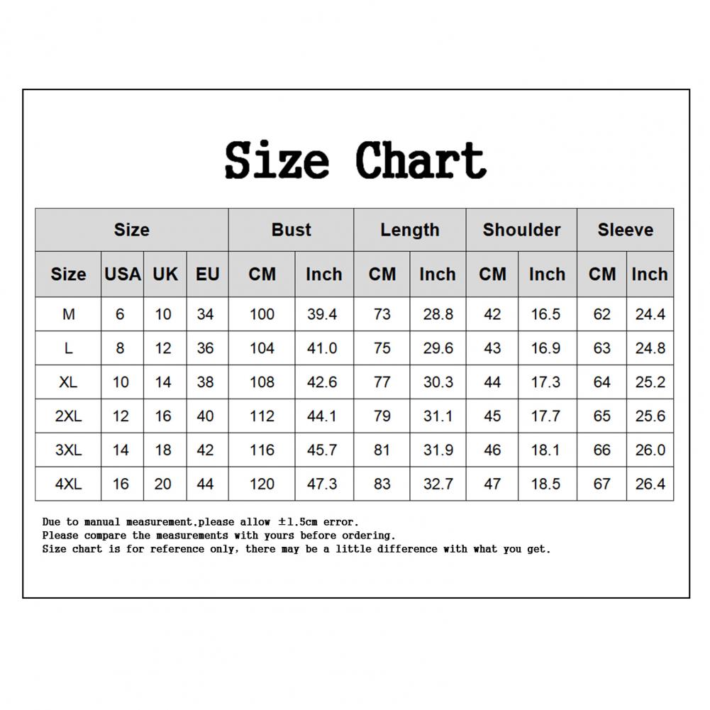 [Наш Размер XL] Обхват груди: 112 см/44,1 ", ширина плеч: 48,6 см/19,1", длина рукава: 66 см/26 ", Длина: 77 см/30,3" (прибл.)