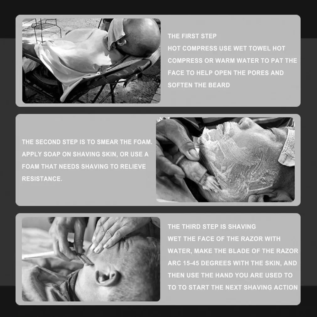 4. Широкое применение: бритва является идеальной прямой бритвой для дома, парикмахерских, личного или профессионального использования.