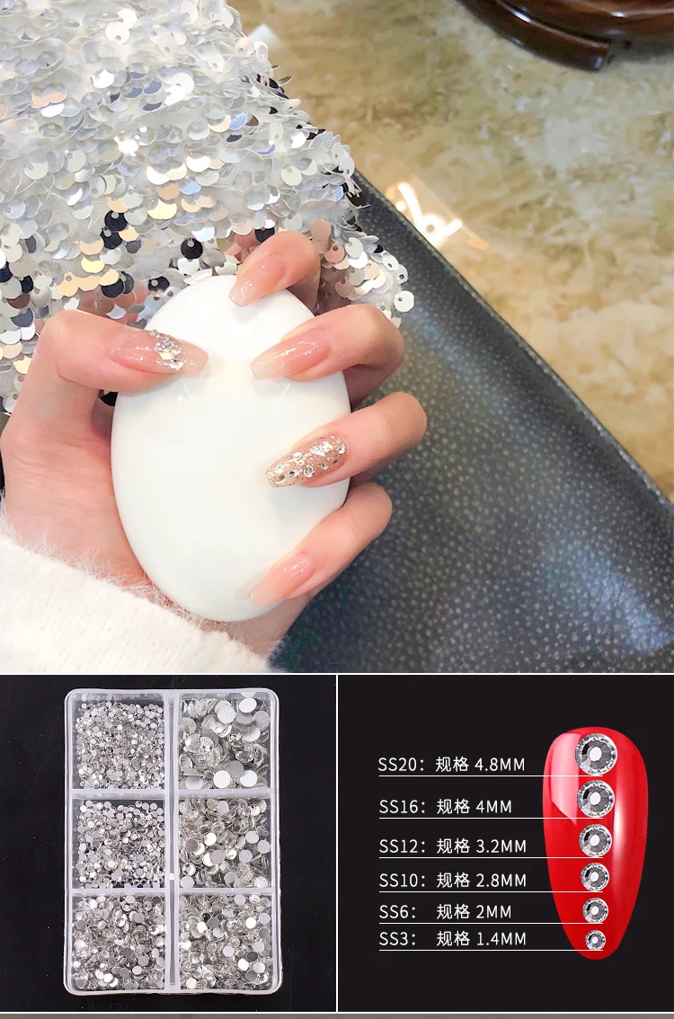 1 коробка, стразы для дизайна ногтей, плоская подошва, прозрачная, Смешанная форма, круглый квадрат, сделай сам, 3D блестящее Ювелирное Украшение в 6 ячеек