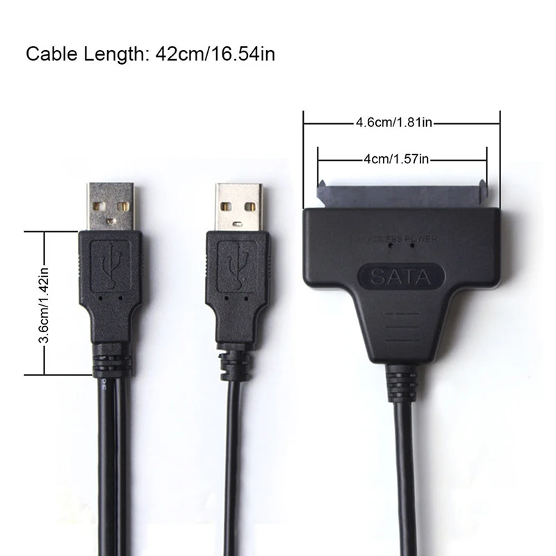 Double USB connectors for no need of external power to support HDD up to 7200rpn (When lack of power, please plug the additional USB connector to the computer)