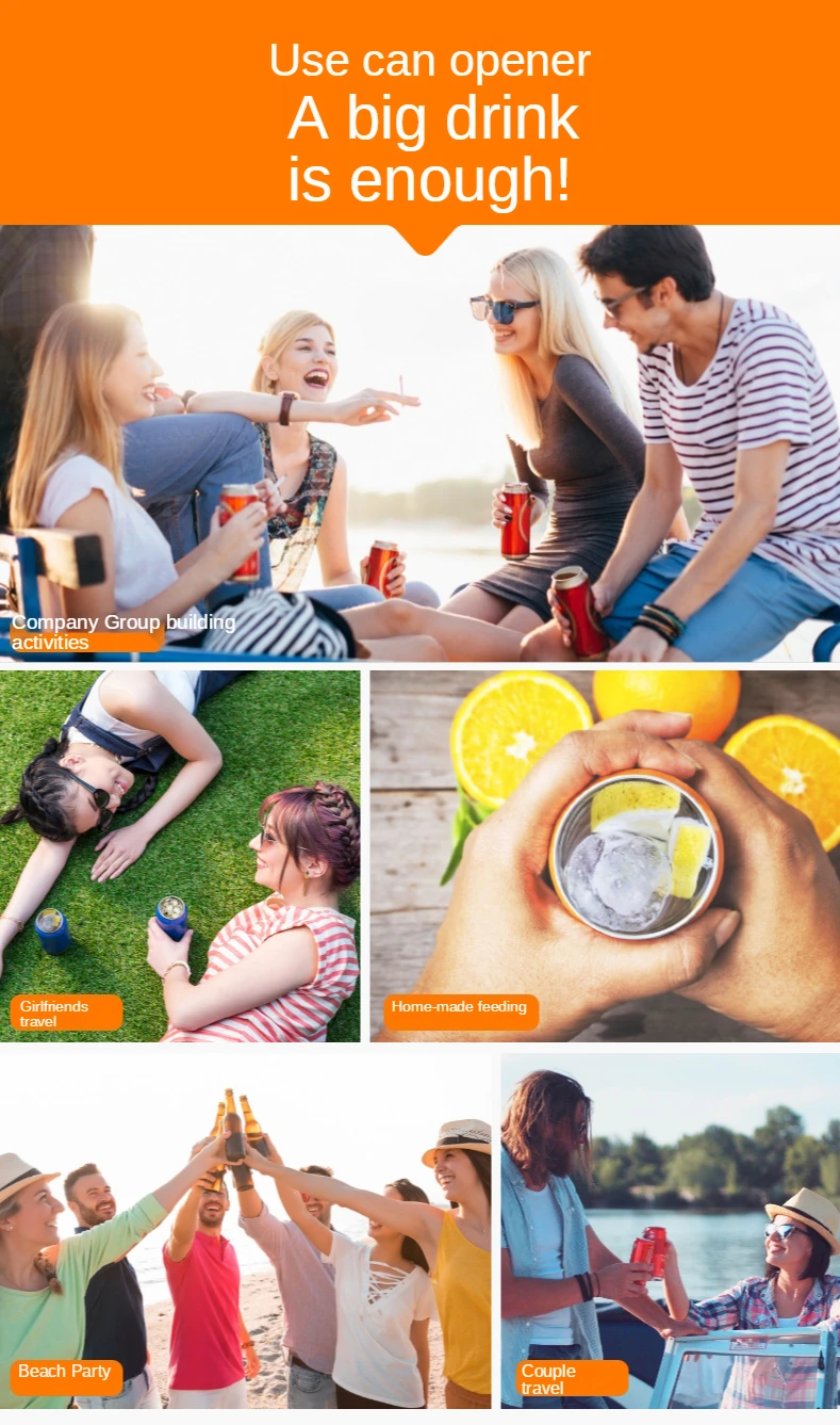 2. Безопасное Открытие: инновационный дизайн безопасно удаляет верх без острых краев. Он может быть использован в большинстве банок для напитков 8-19 унций, и может быть использован хорошо в домашних и импортных консервах напитков, кофе со льдом, содовой воды и так далее.