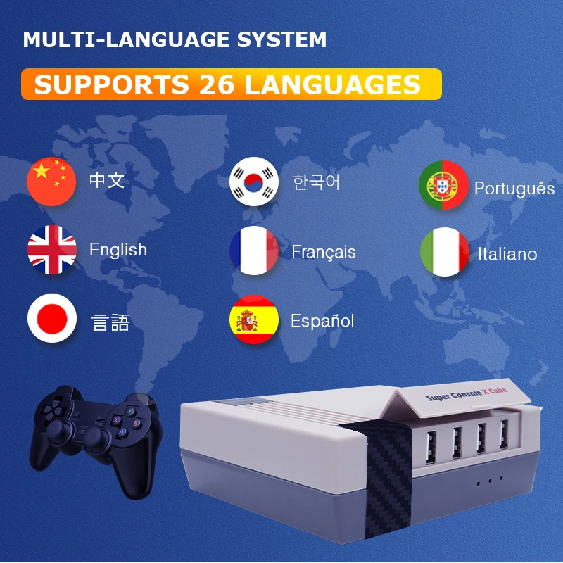 Поддержка многопользовательских игр, оснащенных двойными беспроводными контроллерами 2,4G, подключи и играй, это принесет вам лучший игровой контент и игровой опыт, и вы можете наслаждаться играми с семьей в любое время.