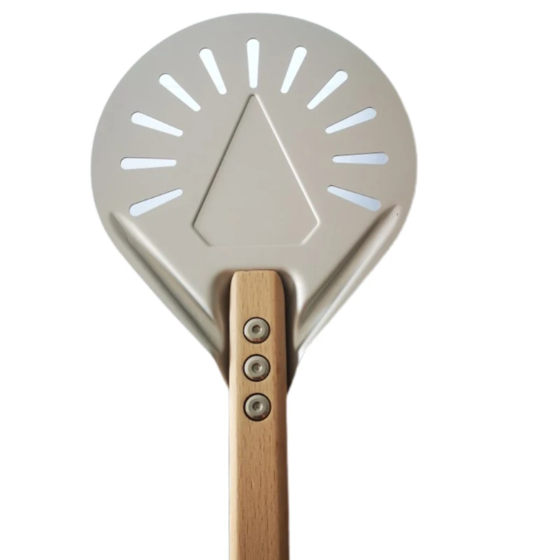 Высококачественные материалы: сальники для пиццы изготовлены из высокопрочного алюминия, светильник прочный, нескользящий, не обжигающий Натуральный Деревянный захват, более удобный для рук.<br/>