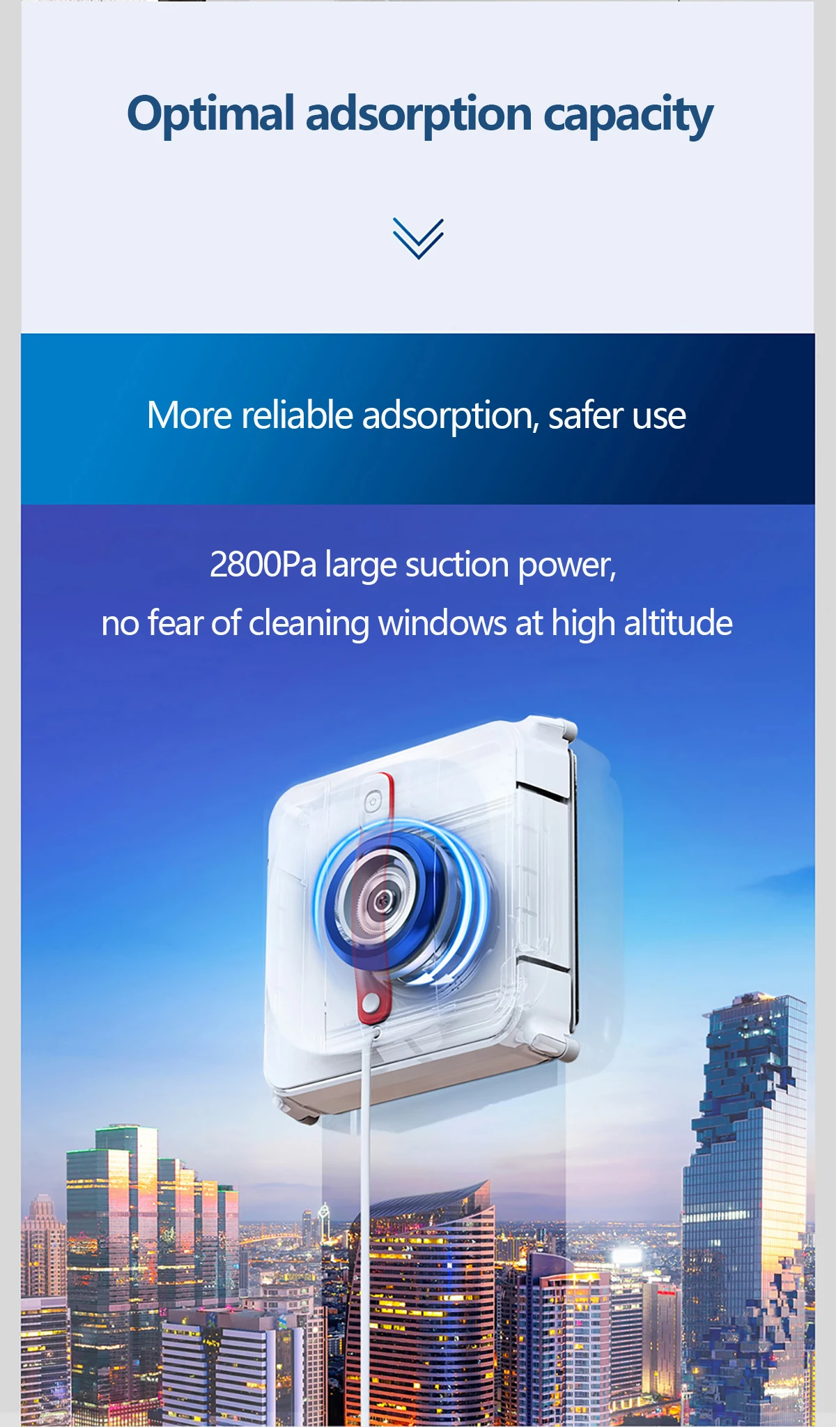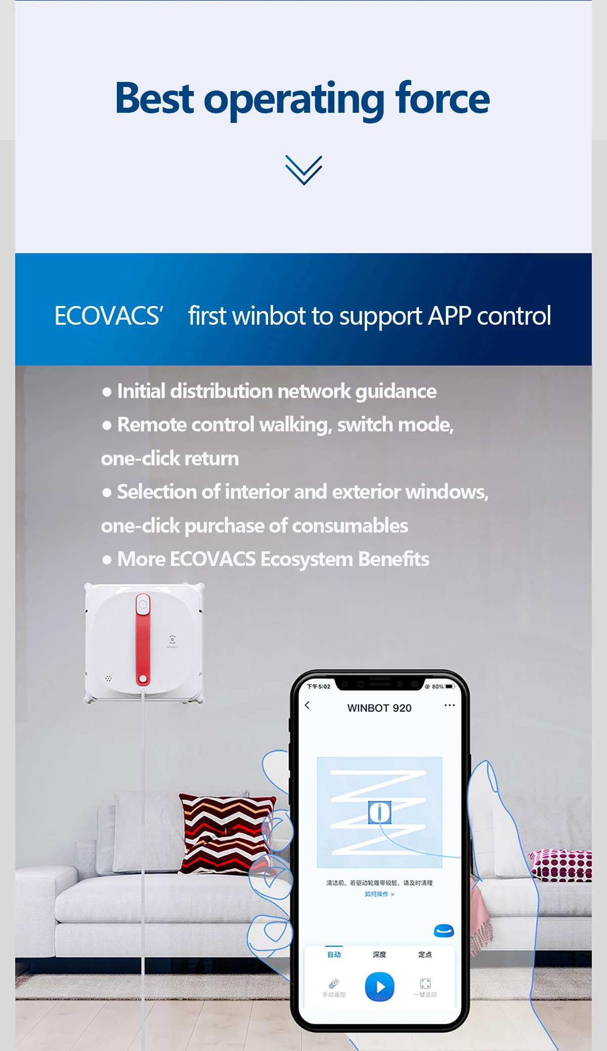 Антибликовая технология обнаружения помех может идентифицировать окружающую среду рамы, разумно регулировать Путь очистки и может вытереть рамку и бескаркасные окна, зеркало, мрамор, стеклянные раздвижные двери, все можно сделать в одной машине.