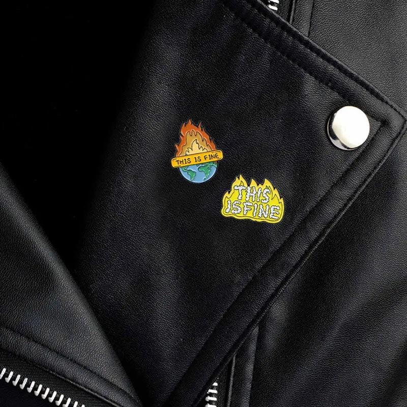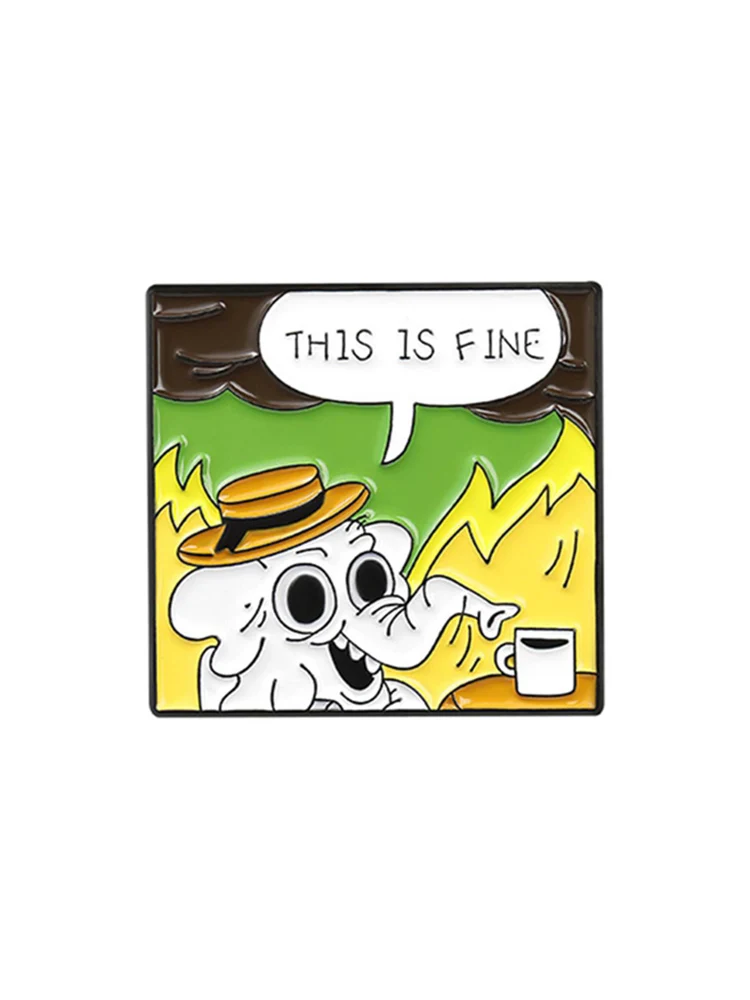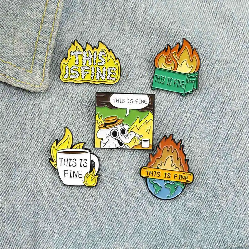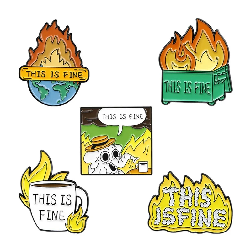 -Все в порядке, я в огне! Эмалированные булавки на заказ забавная Юмористическая брошь Нагрудный значок сумка мультфильм ювелирные изделия подарок для друзей