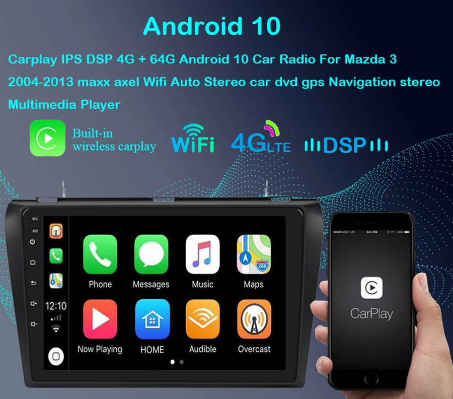 Автомагнитола 4G + 64G Android 10 для Mazda 3 2004-2013 maxx axel Wifi авто стерео автомобильный dvd gps навигатор стерео Мультимедийный ПлеерДля Mazda 3 2004-2013
