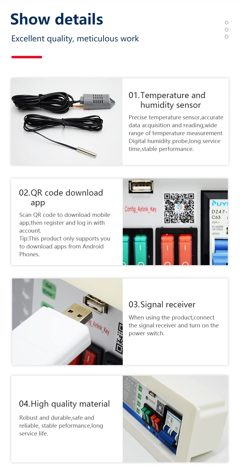 Сбор температуры-Высокая точность, широкий диапазон температур; Выбранный высокопроизводительный датчик влажности, высокая точность, эффективная стабильность и надежность продукта.