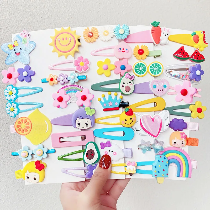 14 шт./компл., новые милые разноцветные заколки для волос с изображением цветов из мультфильмов, Детские милые заколки для волос, модные заколки для волос, аксессуары для волос