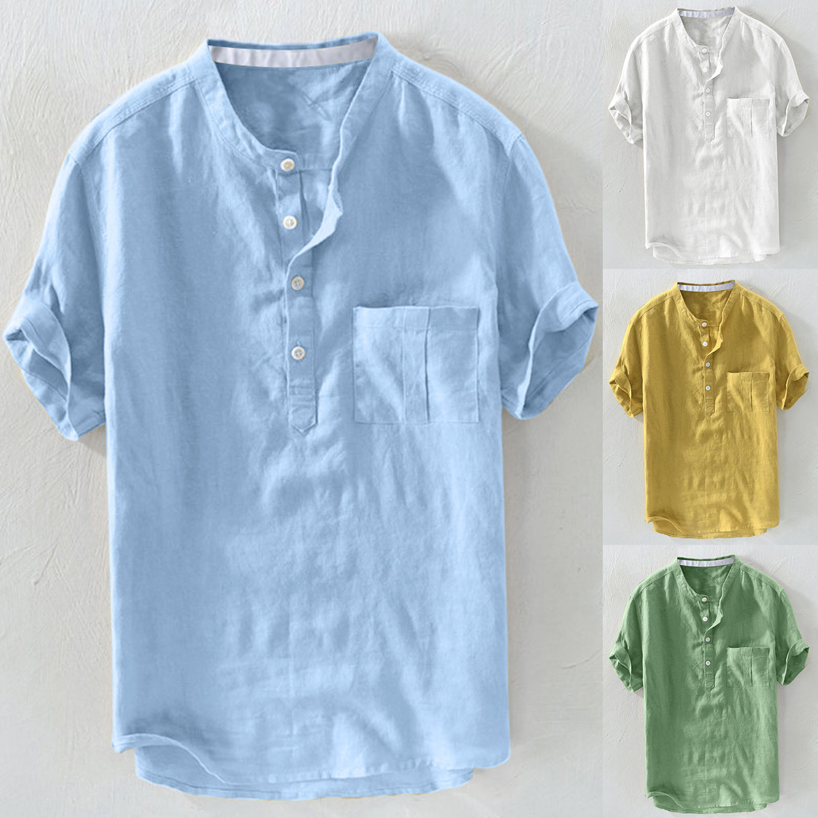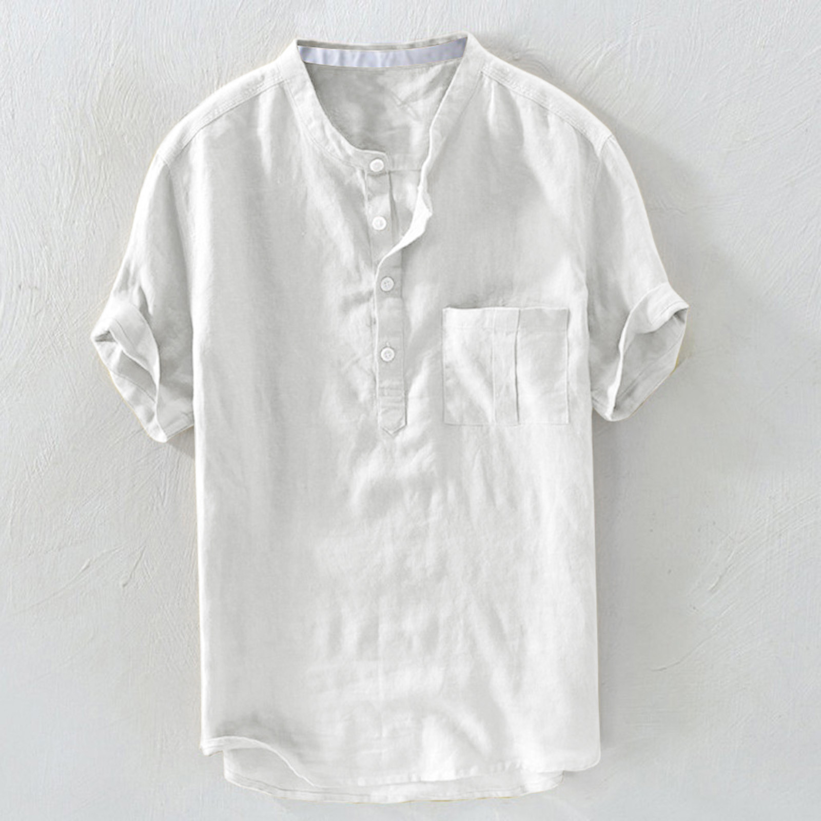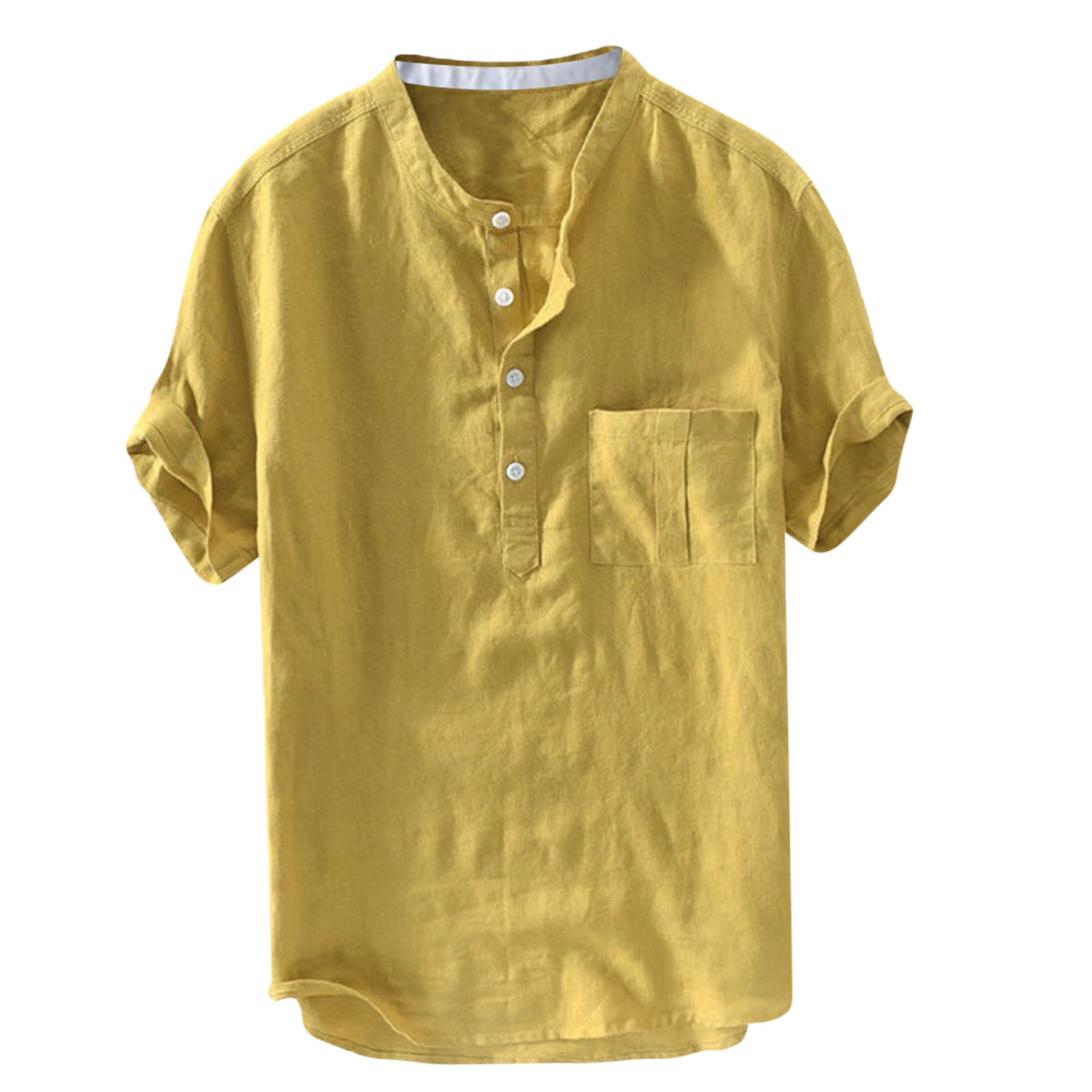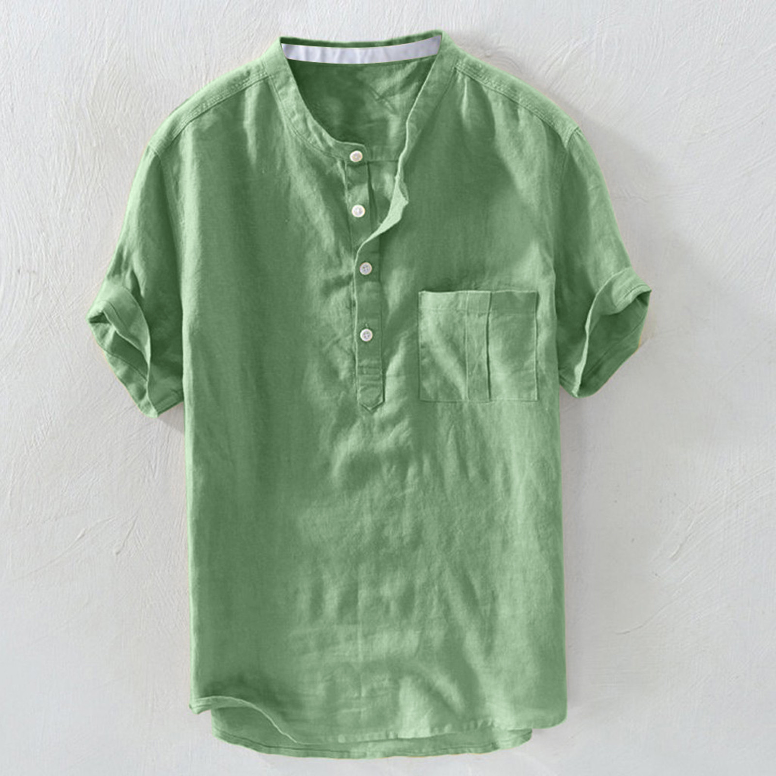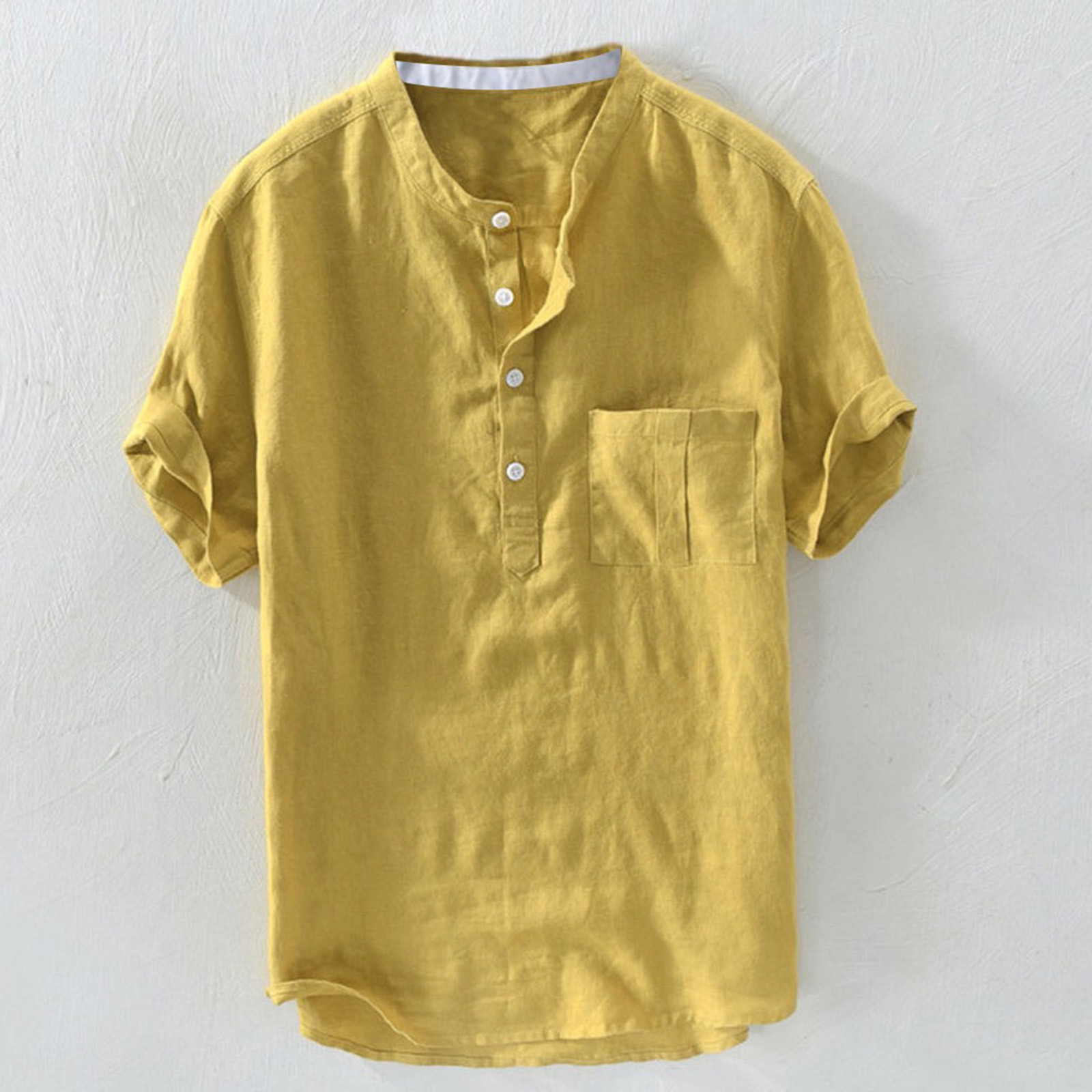 Мужская однотонная льняная футболка с короткими рукавами и пуговицами в стиле ретро